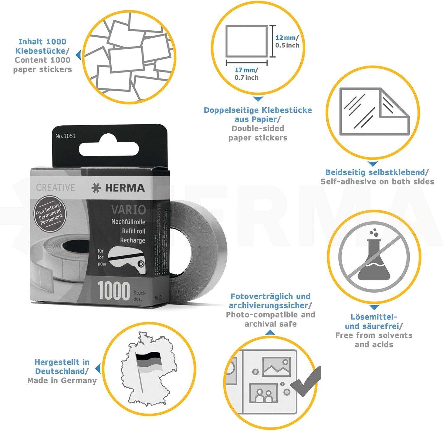 - Nachfüllrolle mit 1000 Klebestücken zweiseitig selbstklebende Papierstücke in Serie oder exakt einzeln für den Klebespender Vario