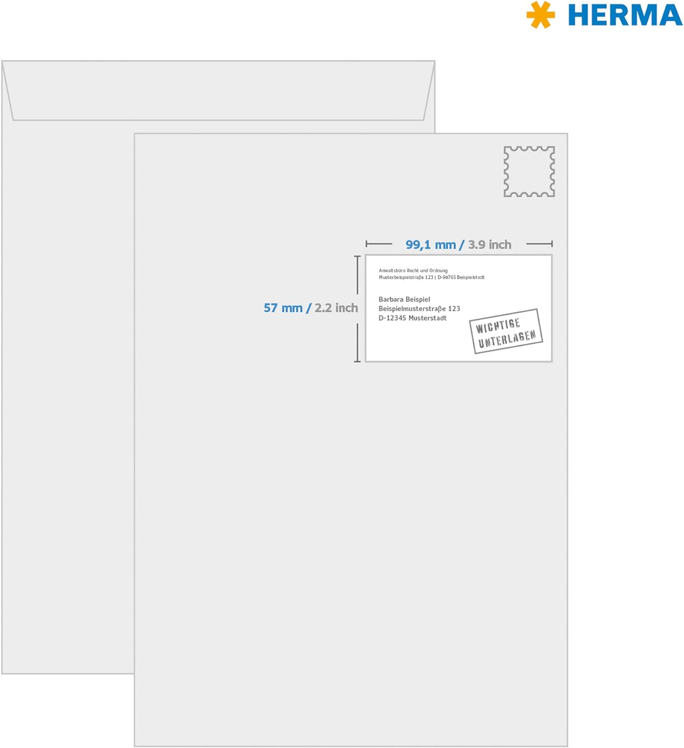 - Lieferumfang: 250 x HERMA Wetterfeste Versandetiketten, DIN A4 Format, 9,91 x 5,7 cm, rechteckig, weiss (25 Blatt je 10 Etiketten)