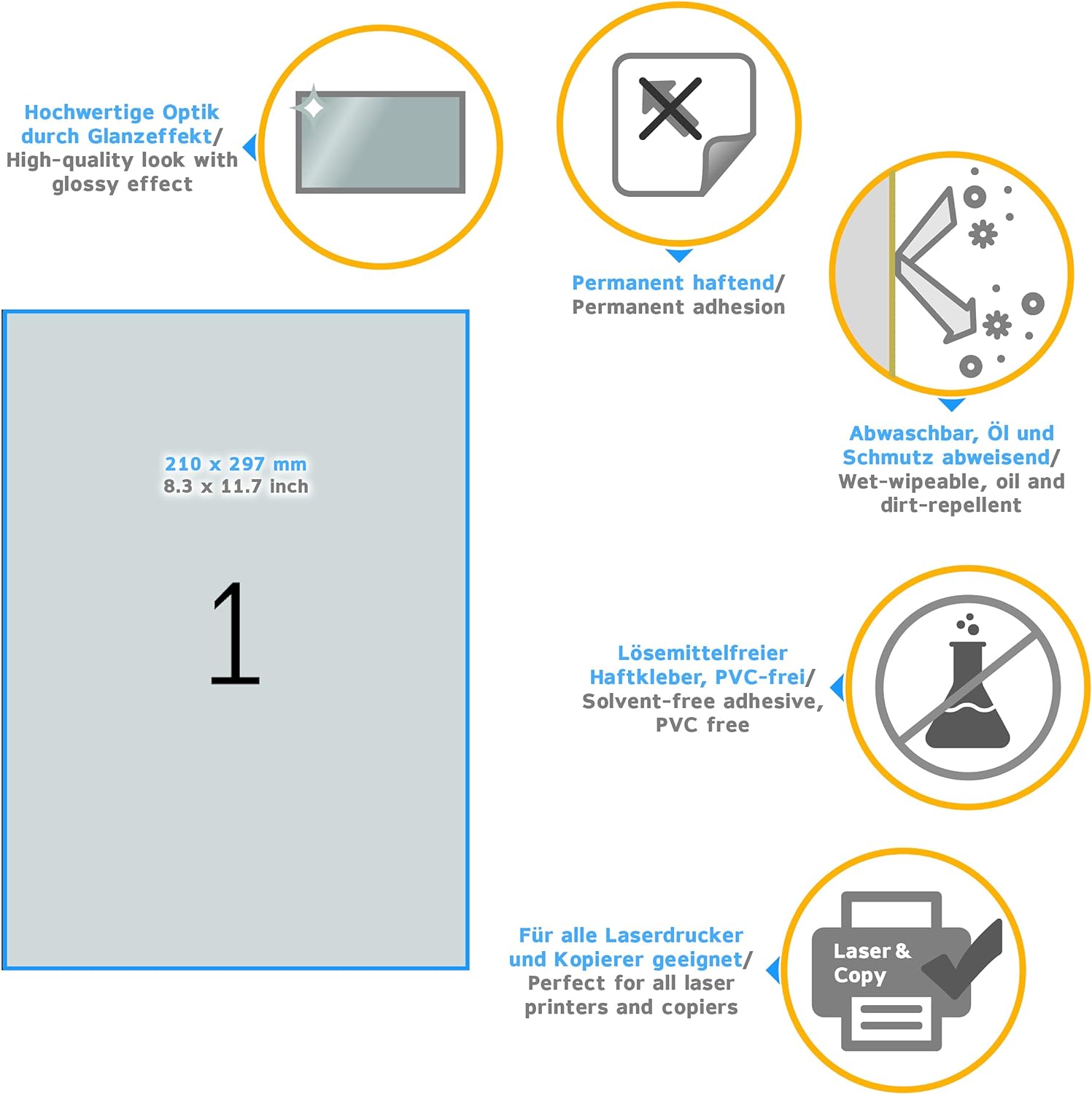 - Lieferumfang: 25 x HERMA Silberfarbene Folien-Etiketten, DIN A4 Format, 21 x 29,7 cm, rechteckig, silber (25 Blatt je 1 Etikett)