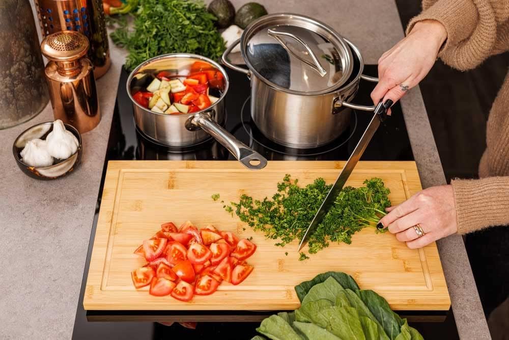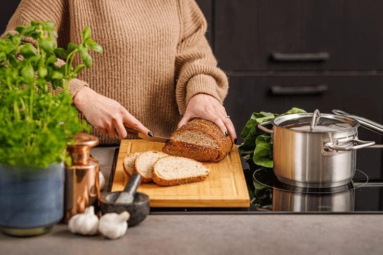 - HeRo Abdeckplatte- Schneidbrett aus Bambus, in sehr robustes Material und hat eine hohe Schnittfestigkeit, kann auch hinter das Kochfeld als Spritzschutz benutzt werden. Die umlaufende Saftrille sorgt für sauberes Arbeiten. Bambus ist schonend für