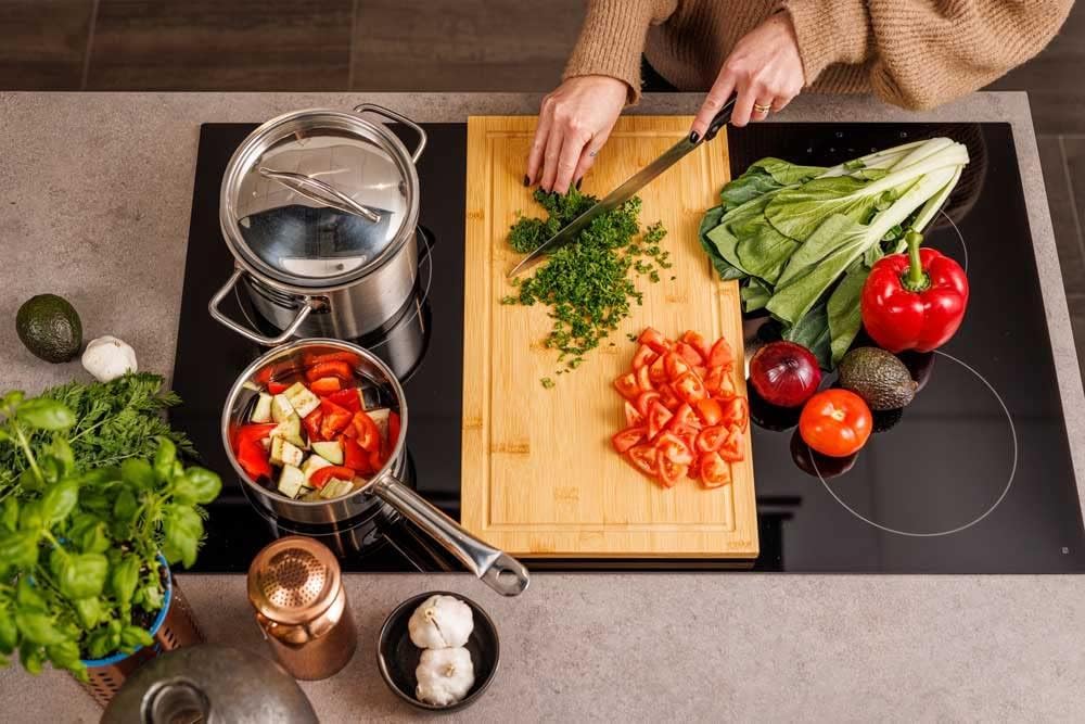 - 2 x Schneidebrett - halbe / Abdeckplatte für ein standard Kochfeld