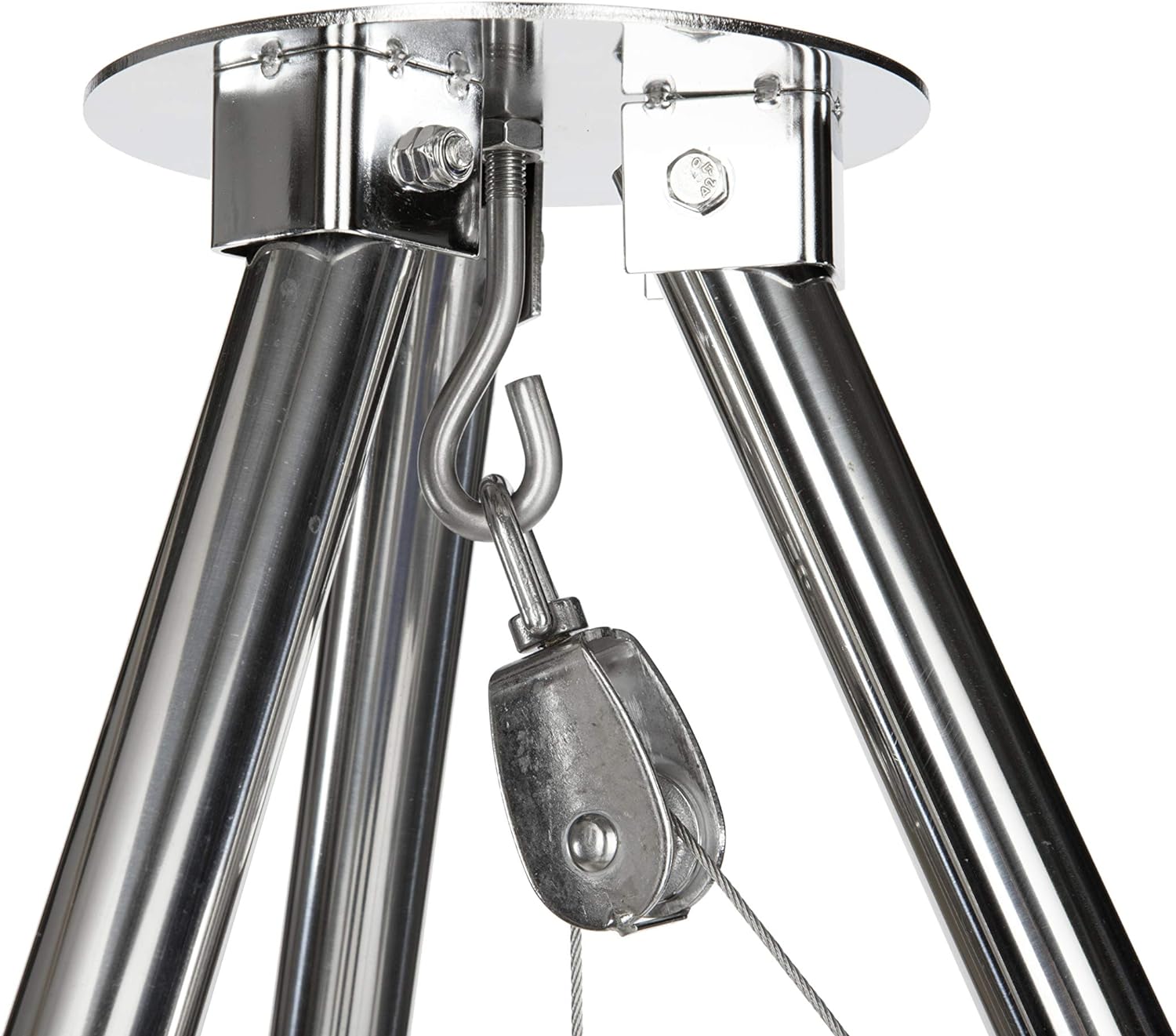 HeRo24 Edelstahl- Dreibein Schwenker Grillgestell mit Kurbel,Kette,Hacken und Wirbel und Tasche zum
