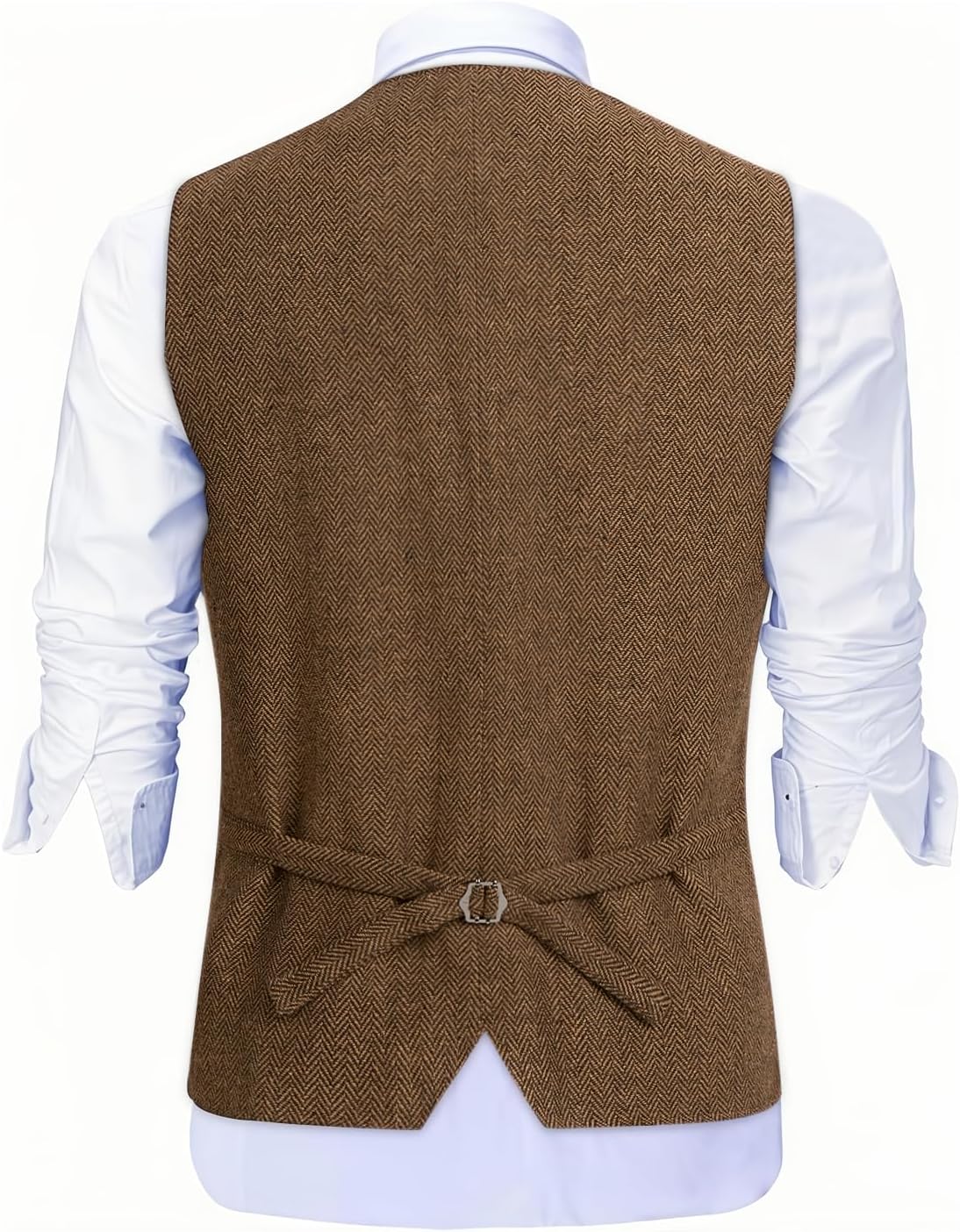 Herren Anzugweste Herringbone Weste Hochzeit Herrenweste Formale Tweed Wollweste Classic Basic Weste