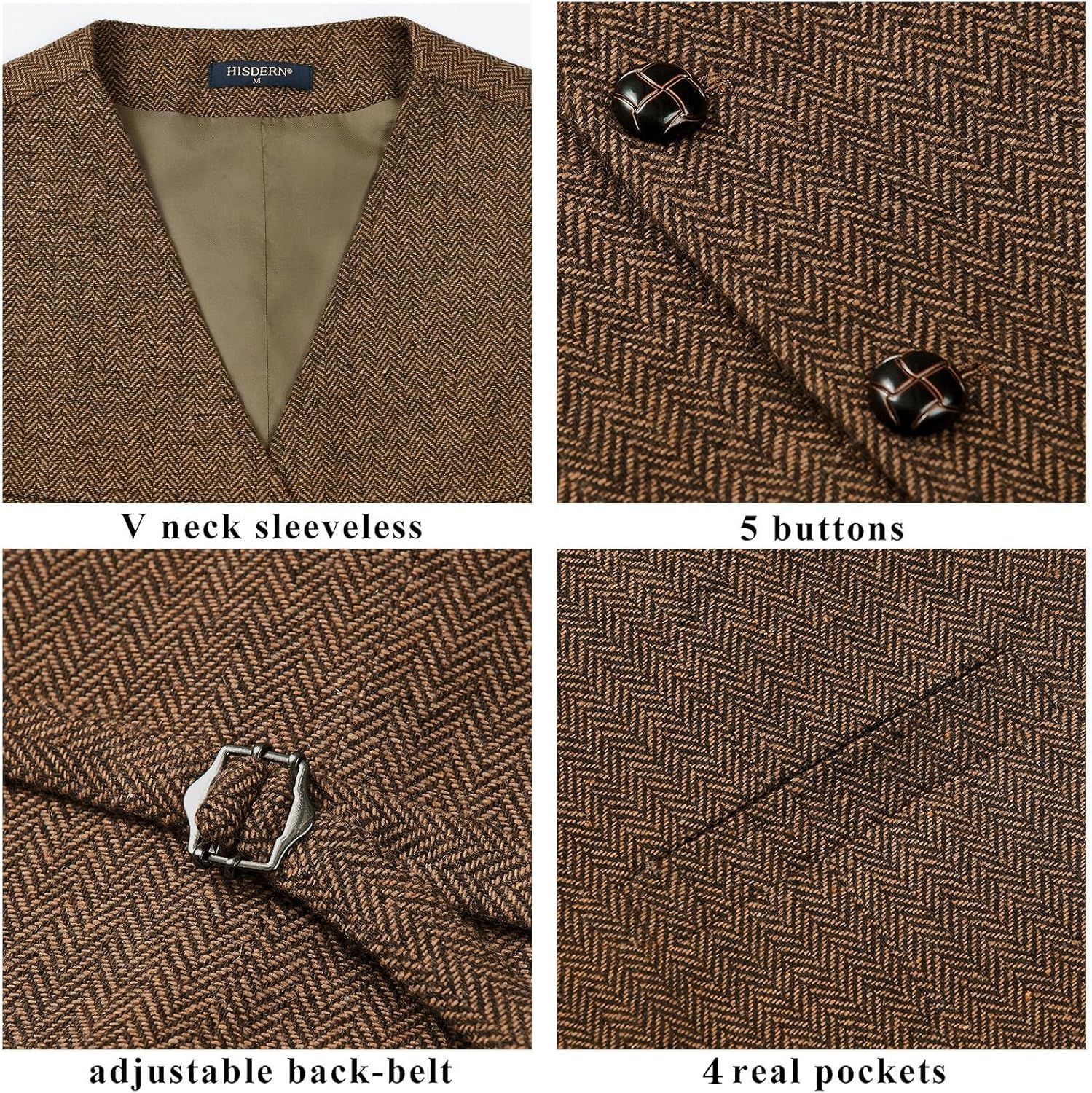 • Feature: Fischgrät, Tweed, ärmellos, V-Ausschnitt, verstellbarer Hüftgurt hinten für eine richtige Passform, 2 echte Taschen, 5 Knöpfe, echte Brusttasche. Diese Herrenweste / Anzugweste kann zu Ihren Hemden oder Ihrem Anzug passen, so dass sie Ihnen