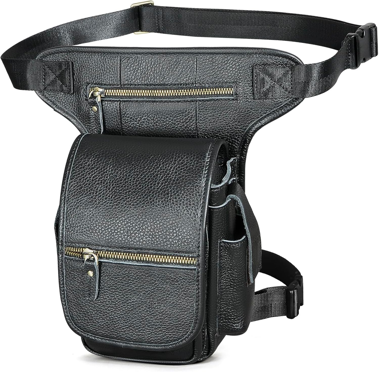 Herren Canvas + Leder Motorrad Reiten Tasche Beinbeutel Beintasche Aussenbeintasche Hüfttasche Drop