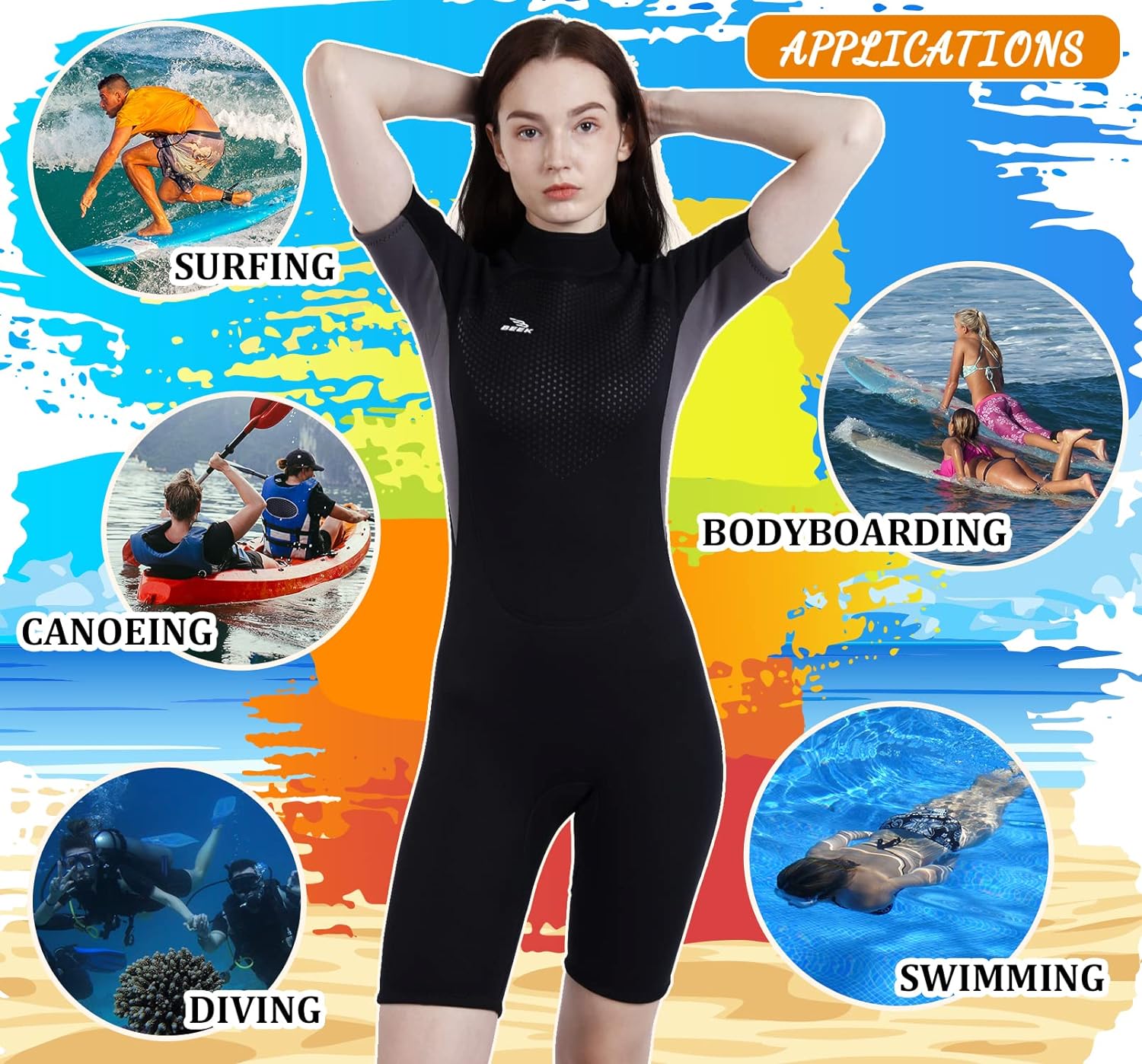 - Dieser Shorty-Neoprenanzug für Männer und Frauen wurde speziell für Wassersport und Wassergymnastik entwickelt. Neoprenanzug-Reissverschluss auf der Rückseite bietet UV-Schutz und Schutz vor Seeläusen, Gelees und anderen biologischen Reizstoffen