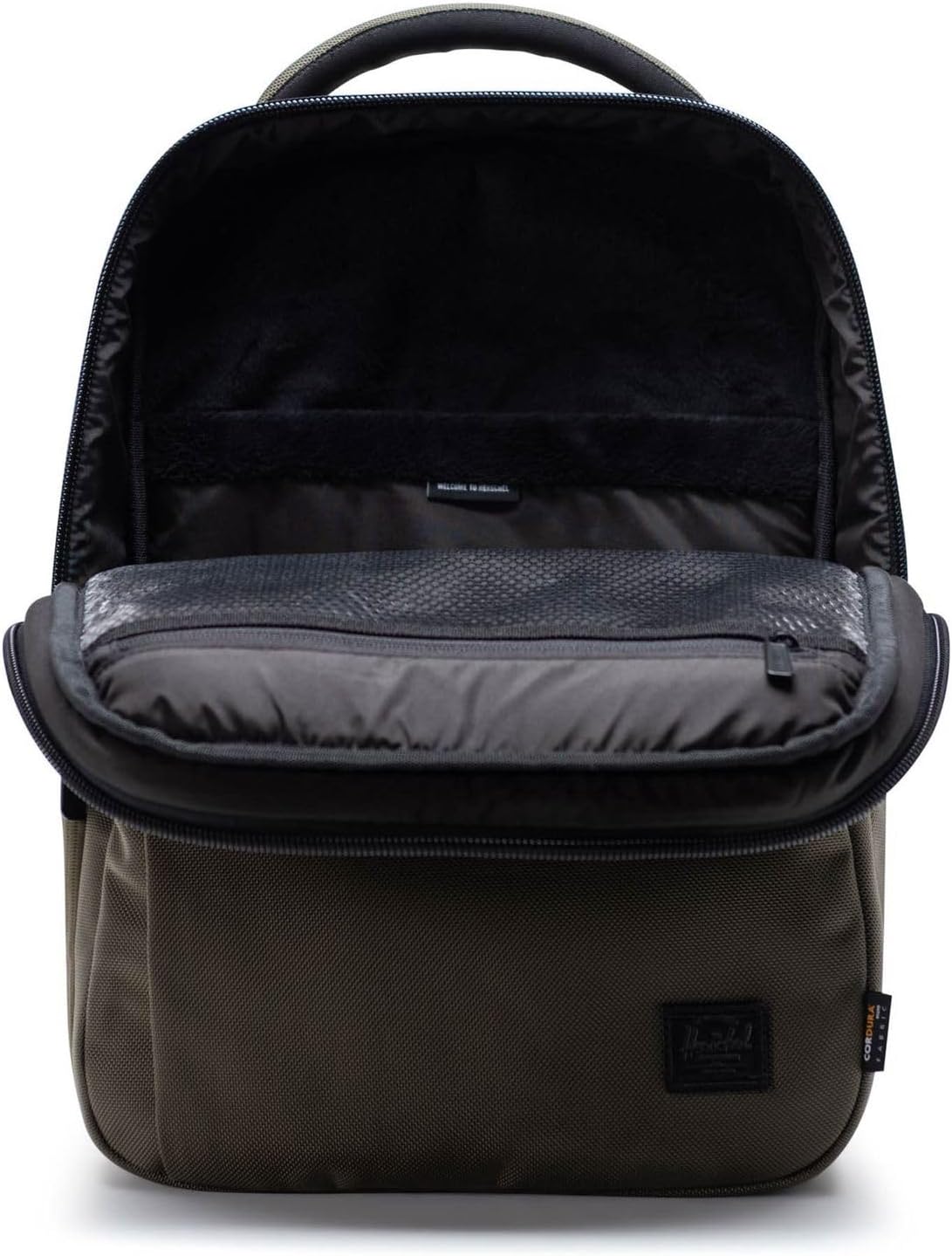 PRODUKTBESCHREIBUNGEN Herschel Rucksack - für das Alltagsleben Daten Rucksack: o Masse: Breite ca. 28 cm, Höhe ca. 45 cm, Tiefe ca. 13 cm o Masse gepolstertes Laptopfach: Breite ca. 28 cm, Höhe ca. 31 cm, Tiefe ca. 2 cm o Gewicht: ca. 895 g o Volumen: ca. 20 l o Farbe: Ivy Green (Grün) o 1 Tragegriff gepolstert: ca. 20 cm o 2 Schulterriemen stufenlos verstellbar, gepolstert, ergonomisch geformt, atmungsaktiv: ca. 55 cm - 85 cm o 1 Brustgurt stufenlos verstellbar, abnehmbar: ca. 17 cm - 36 cm o Material: Nylon o Lieferumfang: Herschel Rucksack mit Etikett Ausstattung Rucksack: o Rucksack wird mit Two Way Zipper geschlossen o Rucksack besitzt 2 Hauptfächer o Im hinteren Hauptfach 1 gepolstertes Laptopfach und 1 Zipperfach o Im vorderen Hauptfach 1 Zipperfach, 1 Einschubfach, 1 Schlüsselanhänger mit Karabinerhaken, 2 elastische Einschubfächer, 1 elastisches Sichtfach und 1 elastischer Stiftehalter o Auf der Vorderseite 1 Zipperfach o Auf der linken Seite 1 elastisches Einschubfach für Trinkflaschen oder Regenschirme o Auf der Rückseite 1 Trolleyhalterung, 1 Befestigung und 1 Zipperfach o Rückseite ist gepolstert, atmungsaktiv o Mit gepolsterten Schultergurten ausgestattet o Besitzt geräumiges Hauptfach o Ist gross genug für DIN A4 o Das Herschel Logo ist gut sichtbar eingearbeitet Herschel Backpack - Ein praktischer Rucksack für jeden Tag Alltagsstress und Platzprobleme Ade! Mit dieser Herschel Tasche wird Ihnen der Alltag ein wenig leichter gemacht. Mit tollem Design und praktischer Form kann er äusserlich auf jeden Fall zu Ihrem täglichen Begleiter werden. Doch auch vor allem mit seinem wunderbaren Innenleben bringt er Ihr Herz zum Schmelzen. Denn dort wartet eine Vielzahl von Fächern auf Sie in der Sie problemlos Ihren