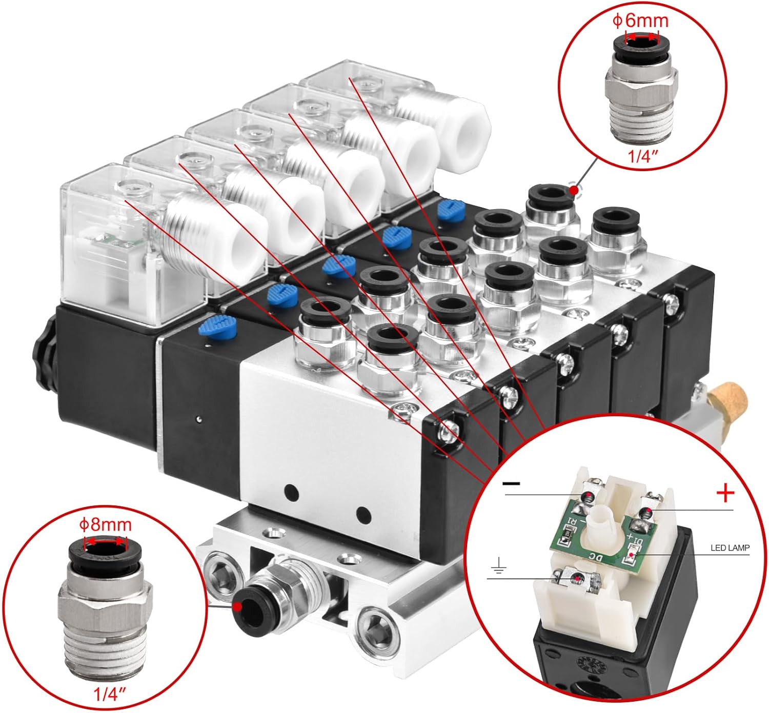 - Einlass/Auslass-Schnellmontage, Innendurchmesser: 6 mm; Basis-Armaturen-Innendurchmesser: 8 mm