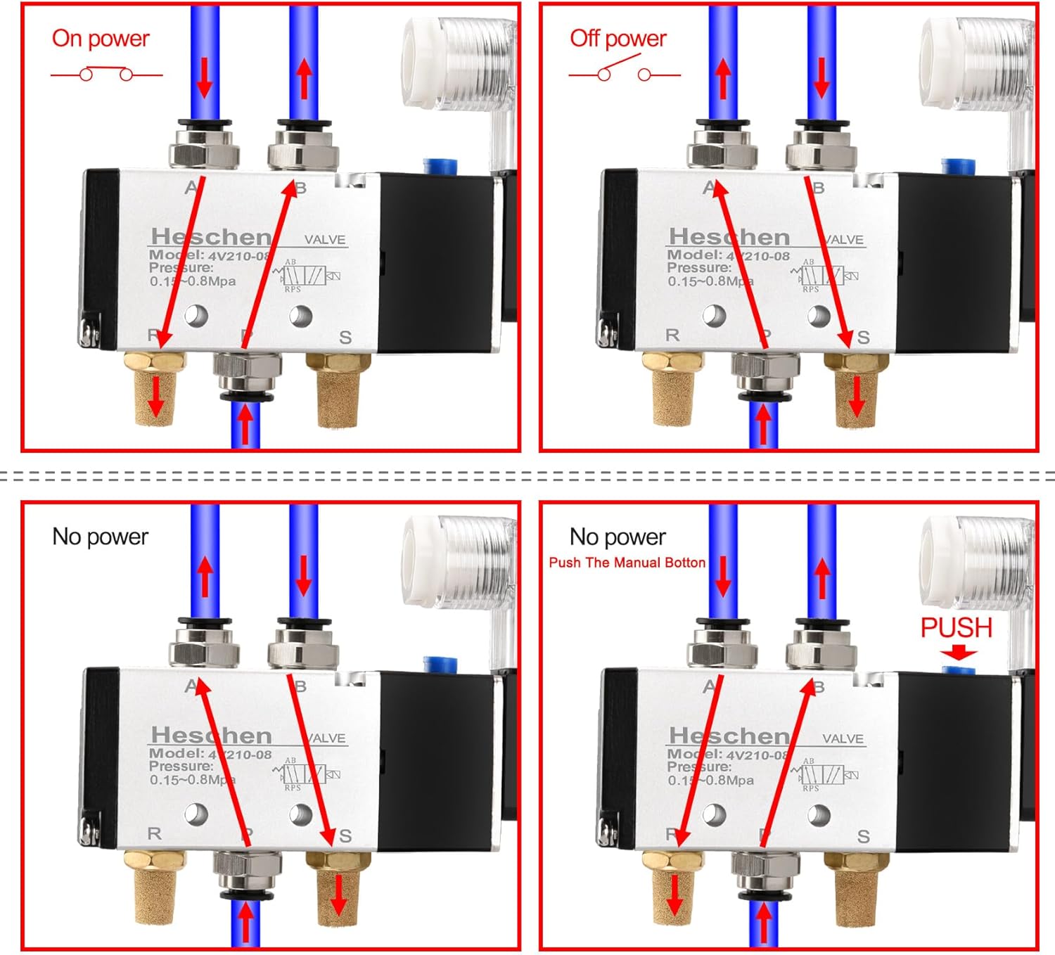 - 5/2-Wege intern angesteuerter, wirkender Typ.