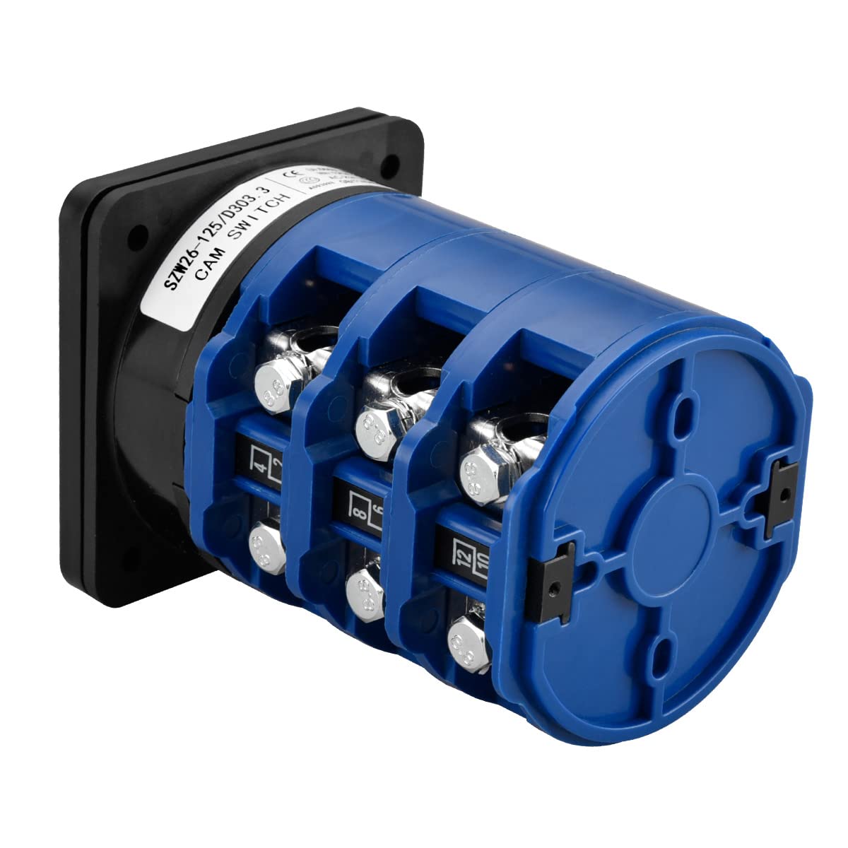 Heschen Universal Drehnockenwahlschalter, SZW26-125/D303.3, 660V 125A, ON-OFF-ON 3 Positionen, 3 Pha