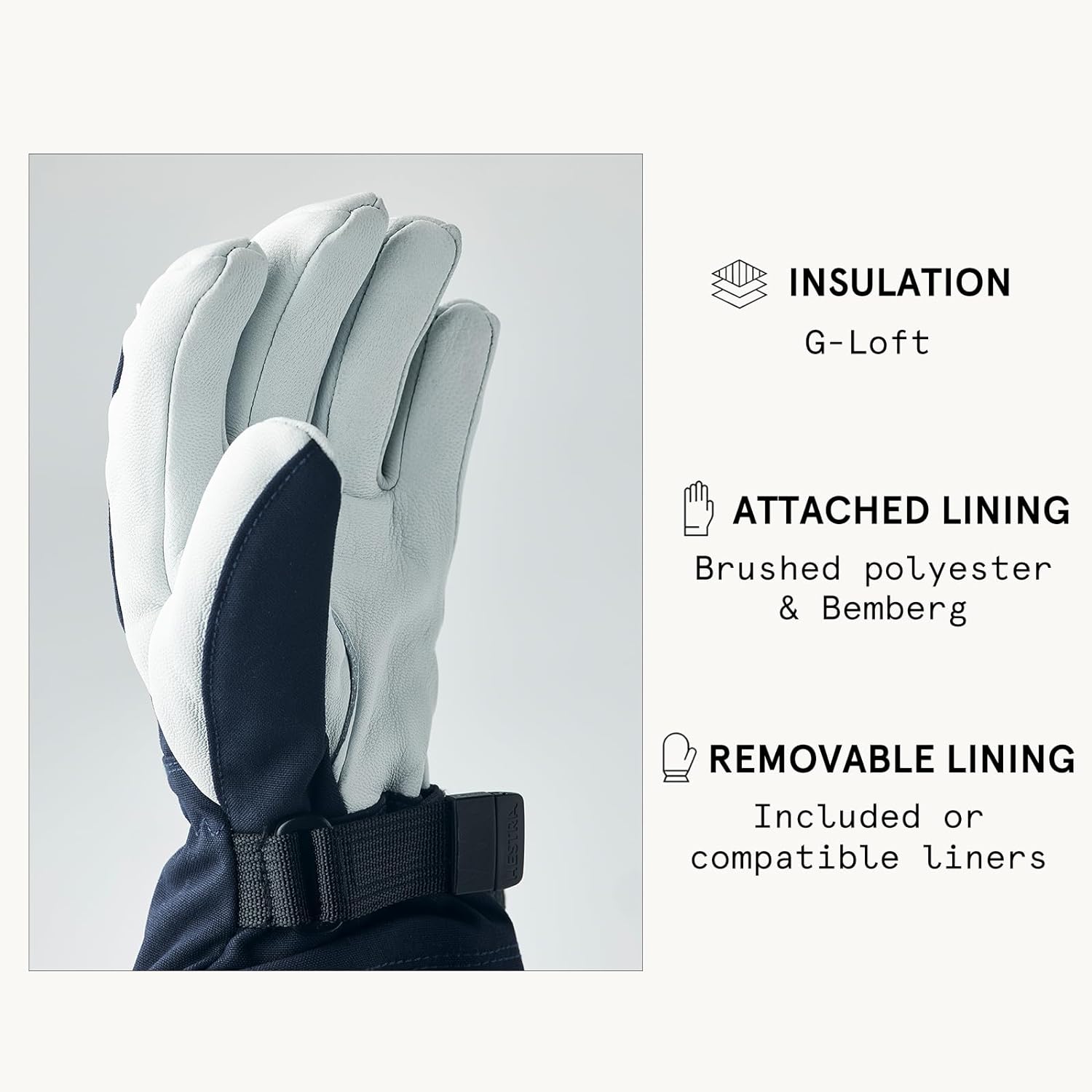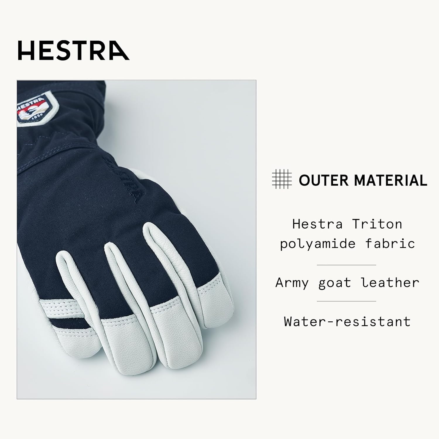 PRODUKTBESCHREIBUNGEN Der bekannteste Skihandschuh von Hestra der Army Leather Heli Ski Jr. – hier in der Kindervariante. Ein robuster, langer Winterhandschuh für junge Skienthusiasten, die gerne im Pulverschnee fahren und lange Tage am Berg verbringen. Die lange Stulpe verhindert, dass Schnee eindringt, und das herausnehmbare Futter lässt sich leicht waschen und trocknen. Details: * robuster und funktionaler Skihandschuh für Kinder * Rückhand aus wetterfestem und atmungsaktivem 3-lagigem Polyamid * Handfläche und Finger aus imprägniertem Ziegenleder * herausnehmbares Fleecefutter (Bemberg) mit Polyester-Isolierung (G-Loft) * hoher Tragekomfort und gute Griffigkeit dank vorgekrümmter Passform * Schneefang mit Kordelzug * verstellbarer Klettverschluss am Handgelenk * mit Hestra-Handcuffs (Handschlaufen) * mehrere Befestigungsmöglichkeiten durch Öse und Aufhängelasche * mit verschiedenen Innenfuttern kombinierbar Aussenmaterial: Hestra Triton-Polyamidgewebe | Ziegenleder Futter: 100% Polyester