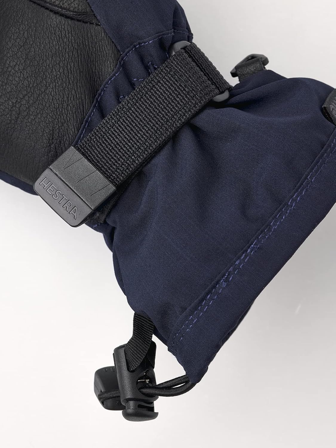 - Obermaterial: Rückhand aus winddichtem, wasserdichtem und atmungsaktivem Hestra-Micron-Polyestergewebe. Innenhand aus imprägniertem Rindsleder/Haarschafleder