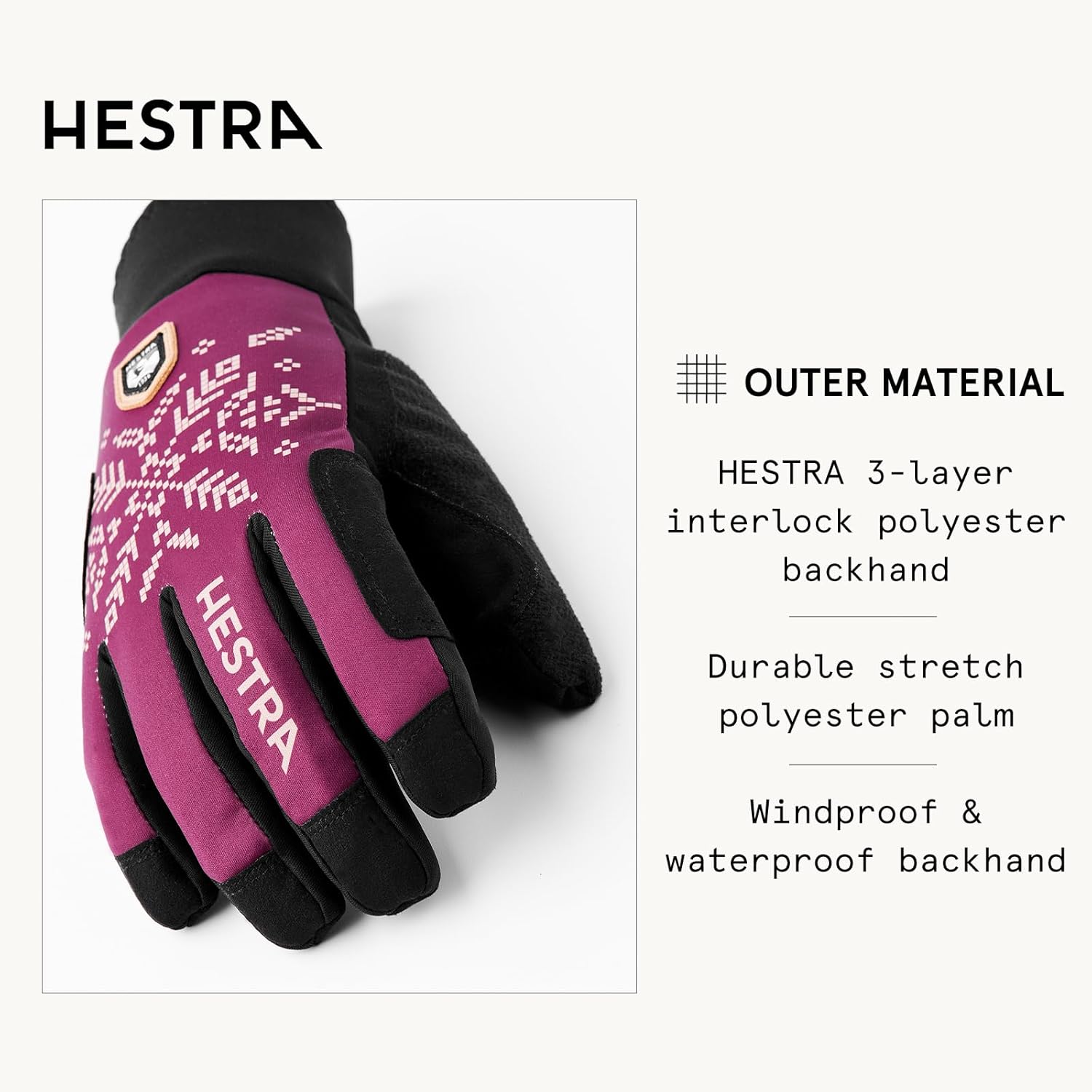 - Obermaterial: Rückhand aus winddichtem, wasserdichtem und atmungsaktivem HESTRA-3-lagigem Interlock-Polyestergewebe. Innenhand aus strapazierfähigem Stretch-Polyester