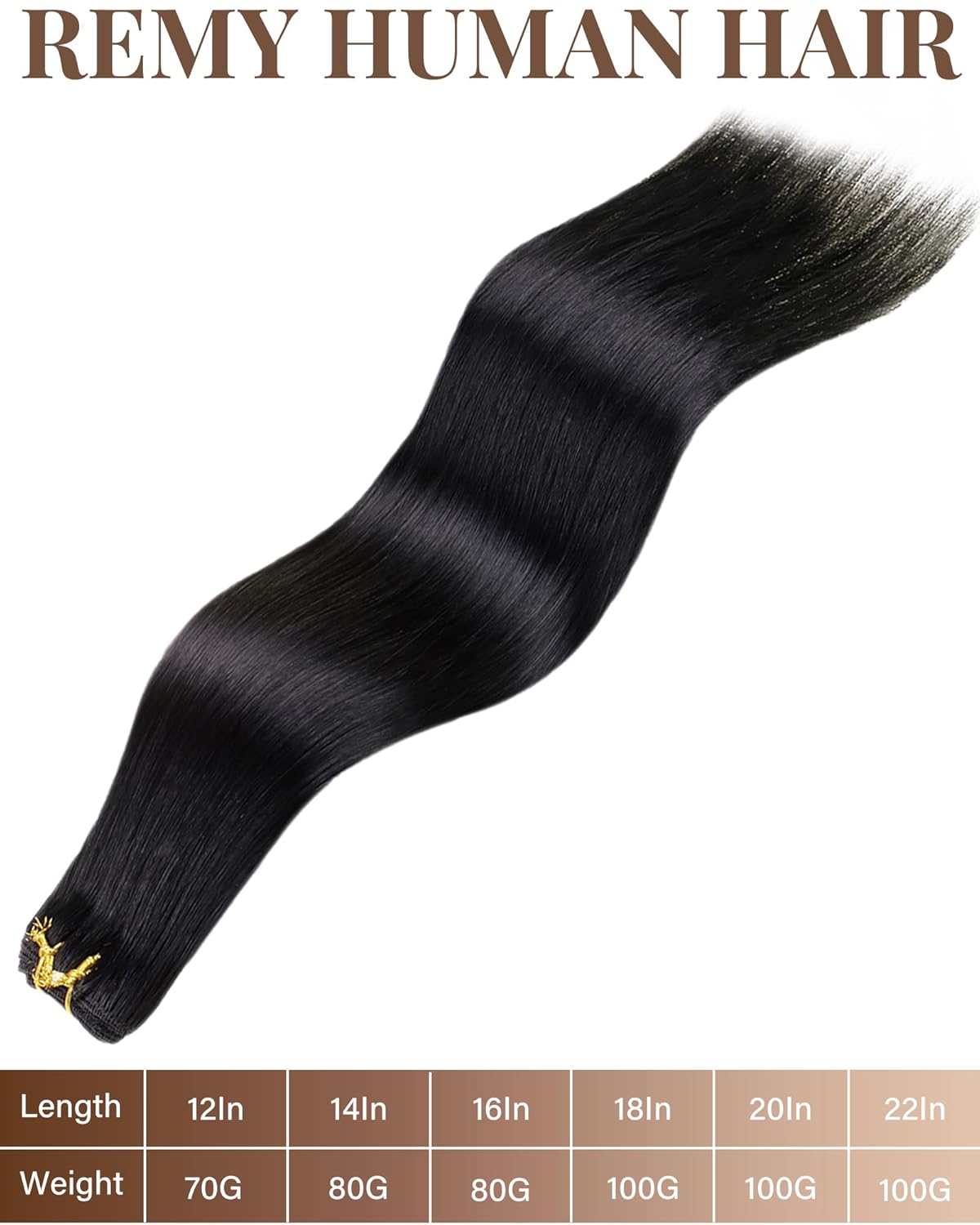 • 【Spezifikationen】12 Zoll/70 Gramm, 14-16 Zoll/80 Gramm, 18-22 Zoll/100 Gramm, Schussbreite 110cm. Das Gesamtgewicht der Haare ist festgelegt. Je länger die Länge, desto dünner der Schwanz.