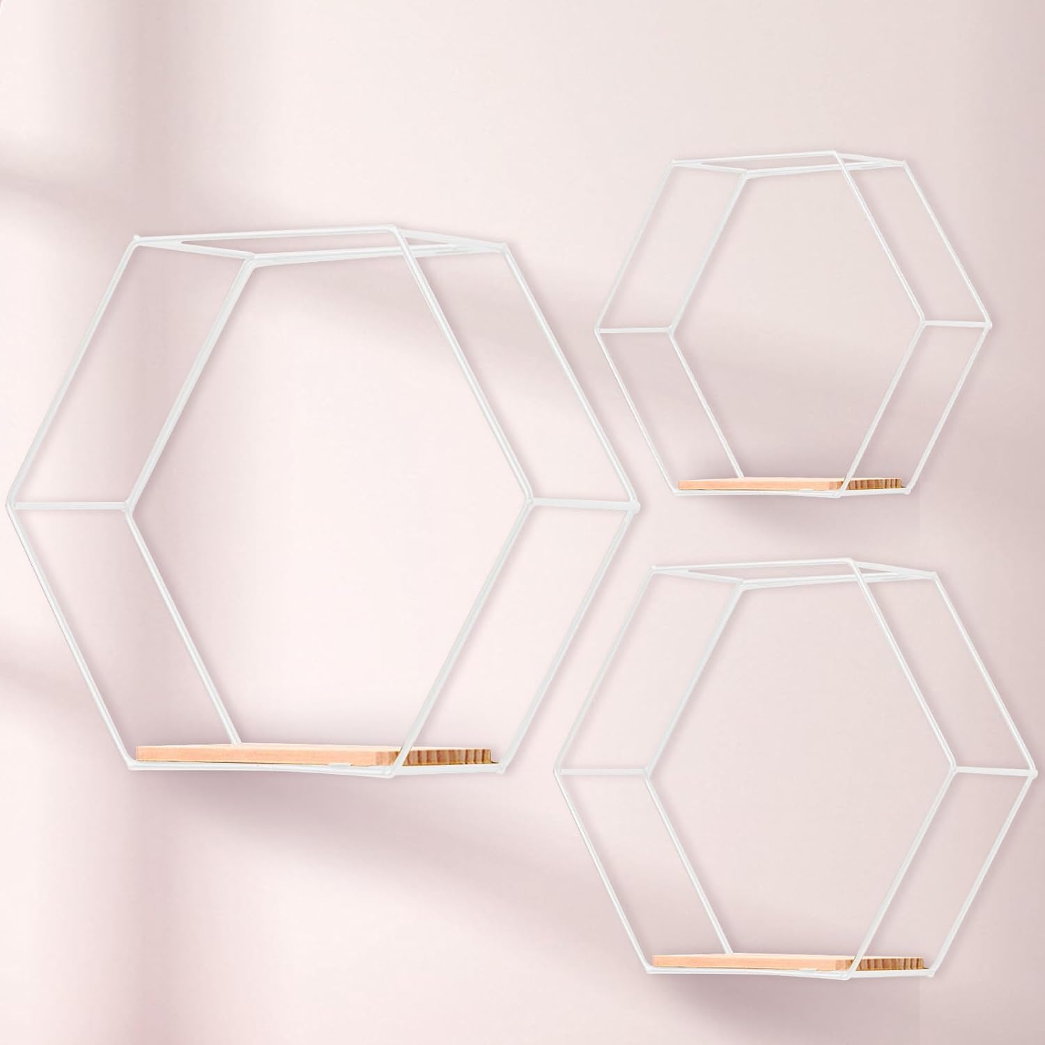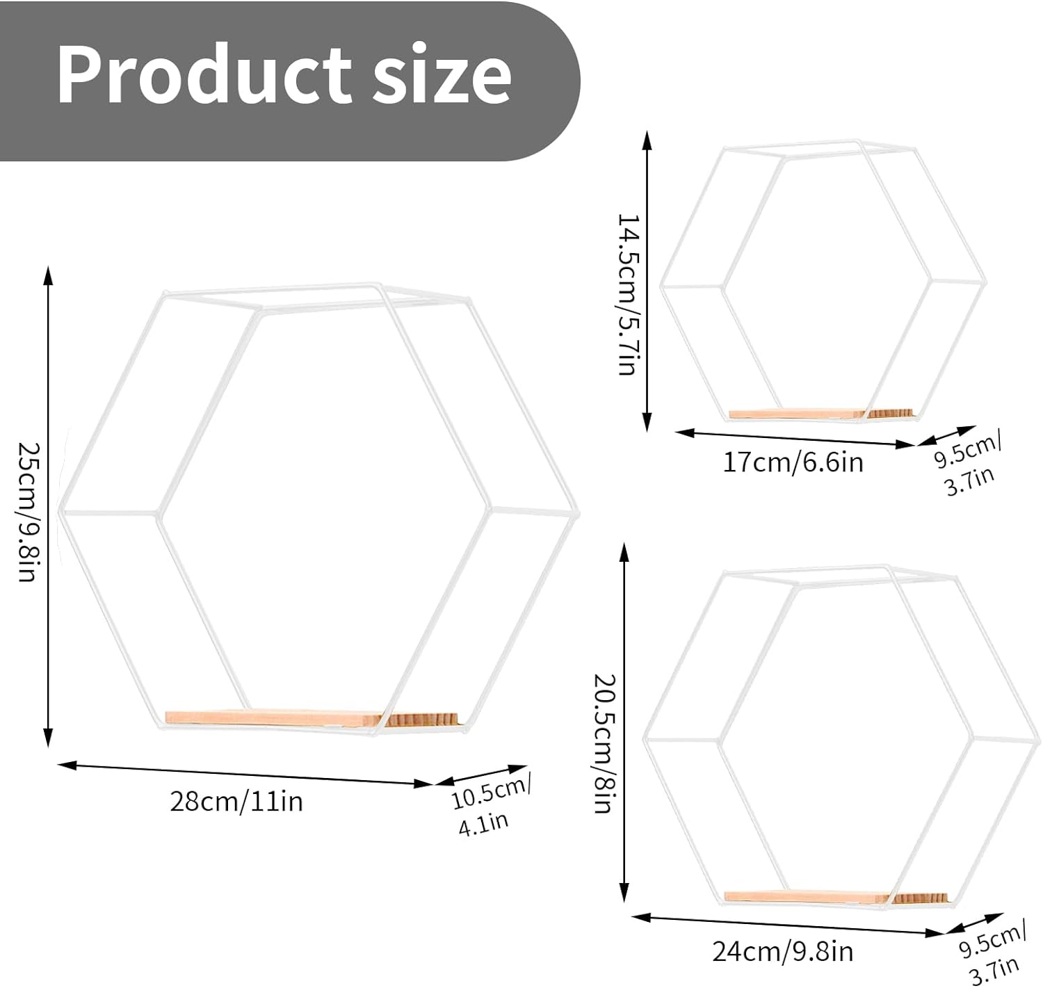 - Vielseitig Einsetzbare Wandregale - Im Lieferumfang sind 3 verschieden grosse Hexagon Metall Schweberegale Weiss mit folgenden Massen enthalten: 28x25x10.5cm, 24x20.5x9.5cm, 17x14.5x9.5 cm. Diese kann man frei zum Dekorieren platzieren. Dadurch wird