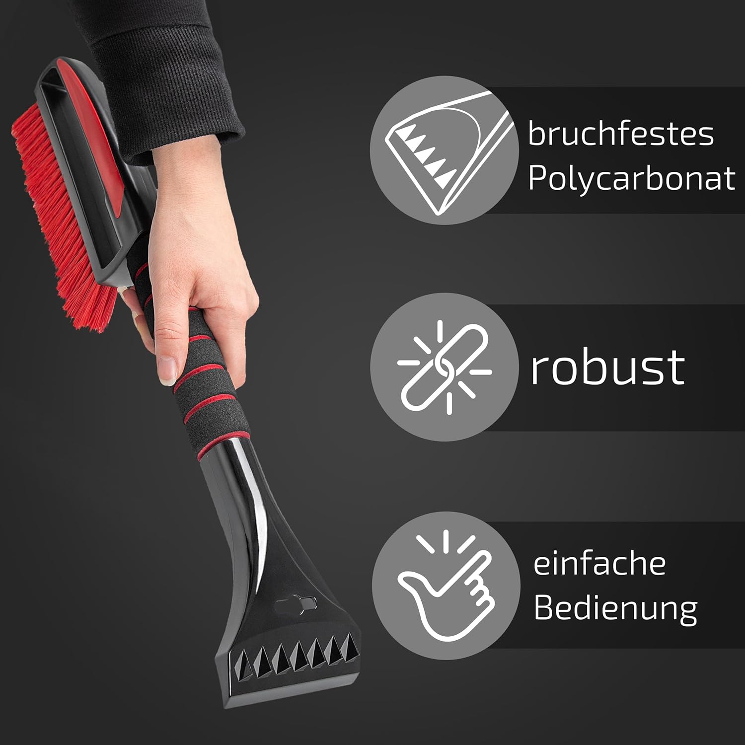 - Ergonomisch & Rutschfest: der gepolsterte und rutschfeste Softgriff aus Aluminium erleichtert die Arbeit am PKW und verhindert ein abrutschen und sorgt für bequemes Entfernen von Eis und Schnee.