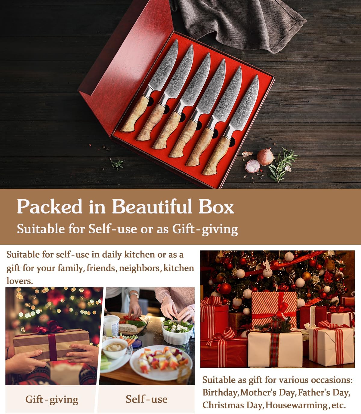 - [Küchenmesser-Handwerkskunst] Mit Vakuum-Wärmebehandlungstechnologie und 12 Verfahren zur Messerherstellung sind unsere Messer langlebiger und scharfer. Die Funktionsmesser können Gemüse, Obst, Sushi, Brot, Speck, Rindfleisch, Fischfilets und so
