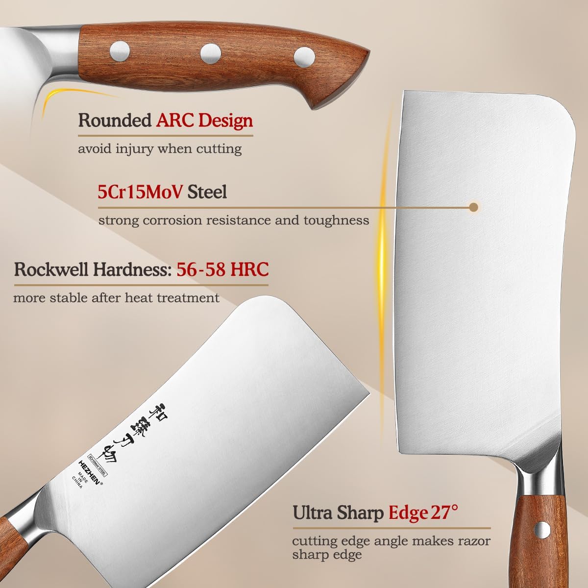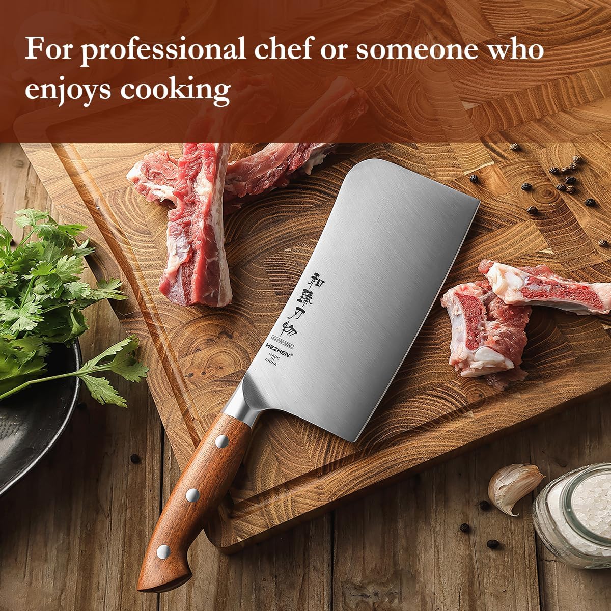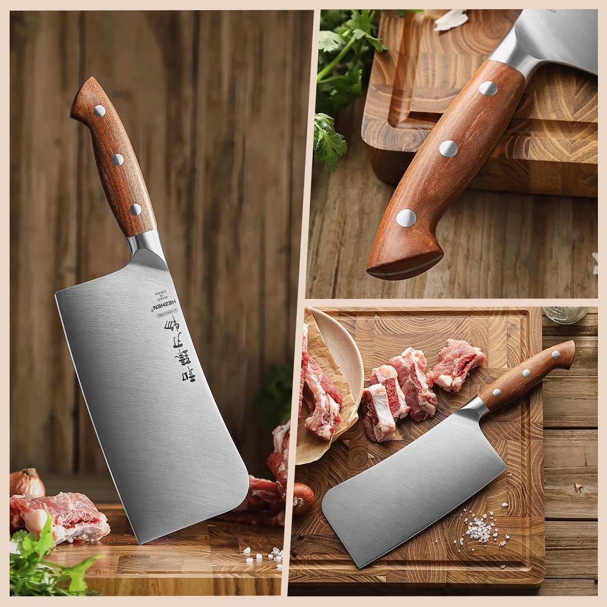HEZHEN Hackmesser Chinesisches Kochmesser, Fleischermesser Asiatischer Art, Scharfes Küchenmesser Me