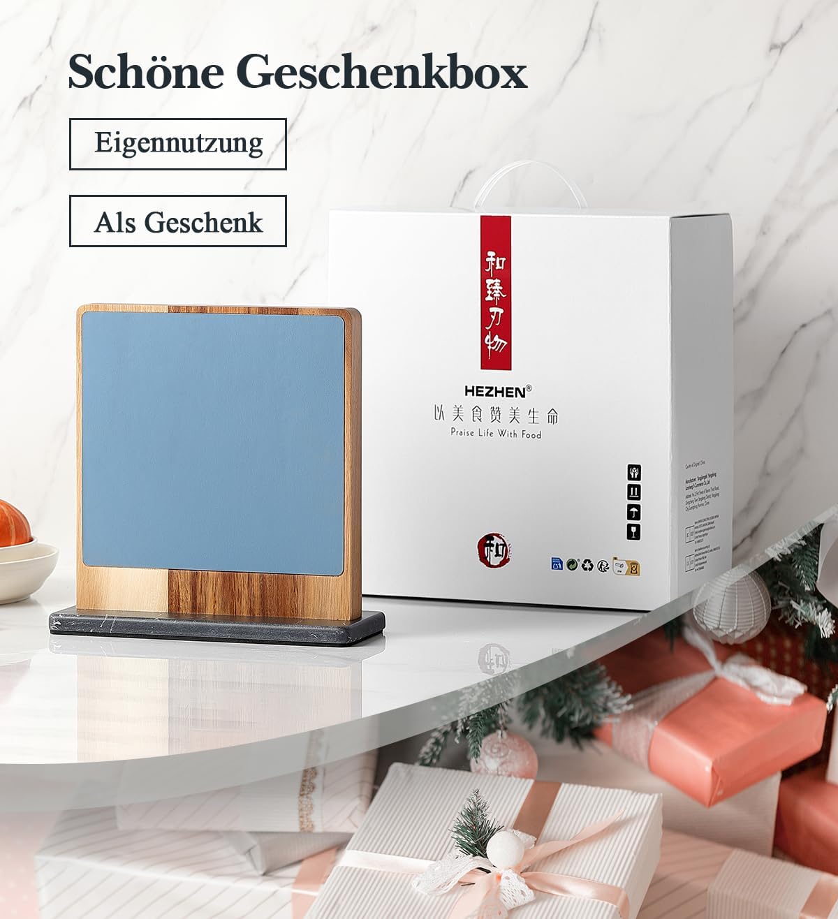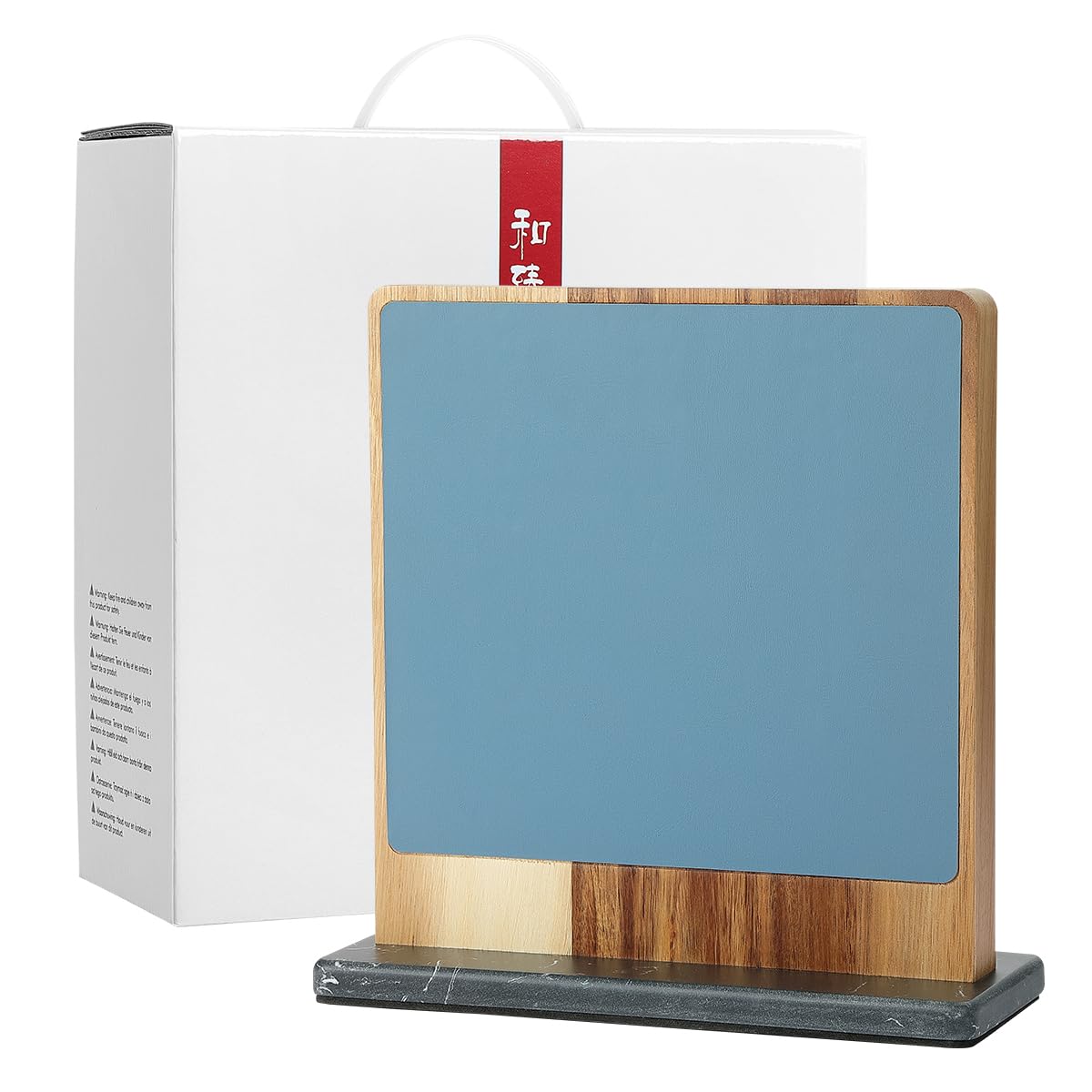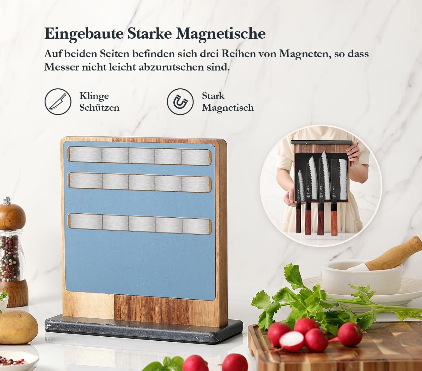 HEZHEN Magnetischer Messerblock aus Akazienholz - Doppelseitiger Magnetischer Messerhalter mit Leder