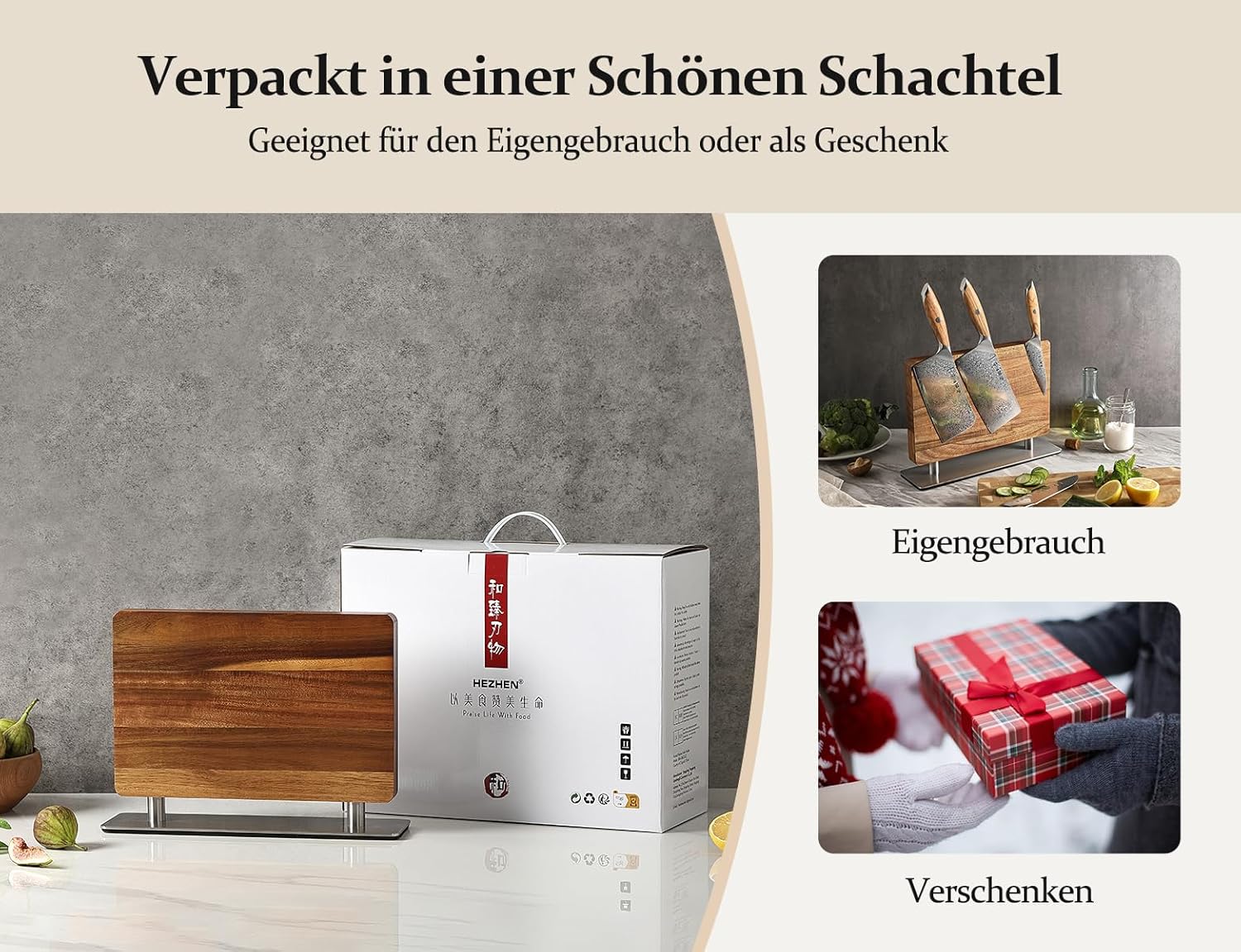 HEZHEN Magnetischer Messerhalter Holz, Doppelseitiger Starker Magnet Akazienholz Messerblock, mit Ed