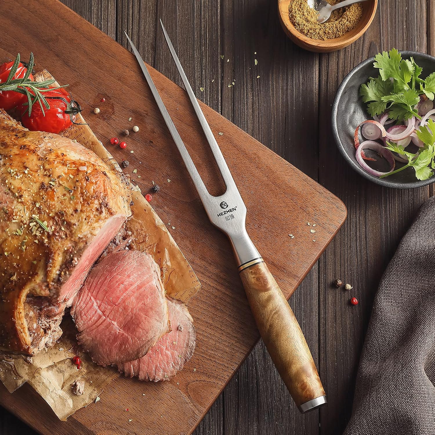 • [HEZHEN Tranchiergabel] geeignet zum Kochen und Grillen in der Küche, der glatte Griff liegt angenehm in der Hand, die Edelstahlgabel ist robust und fest und das zuverlässige Material eignet sich für Ihre unterschiedlichen Bedürfnisse. Die Gabel
