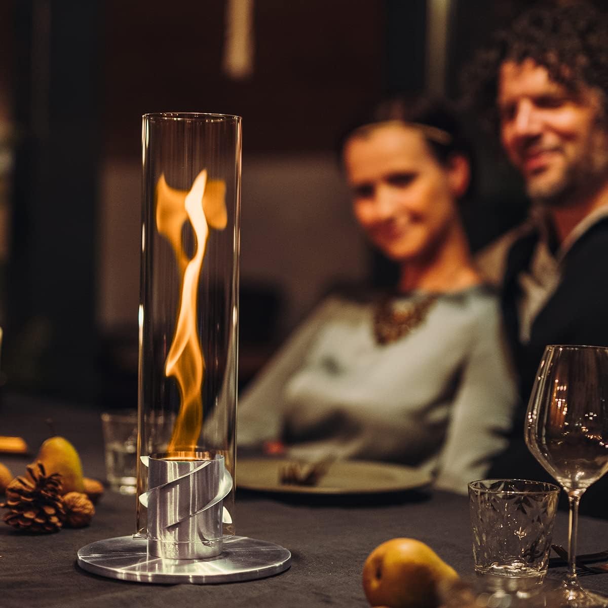 • ÜBER SPIN: SPIN ist ein mit Bioethanol betriebener Tischkamin mit faszinierendem Flammenwirbel in einem dekorativen Glaszylinder mit massivem Fuss. So zaubert SPIN Lagerfeueratmosphäre auf Ihren Tisch.