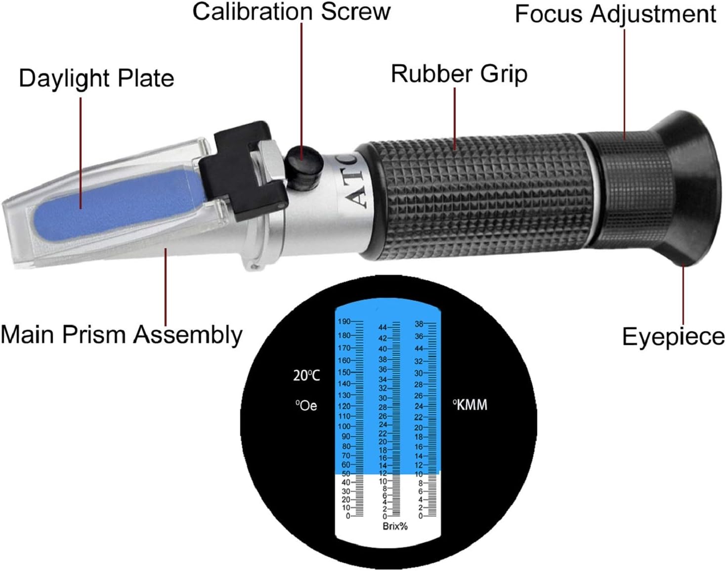 - Das ist ein wesentliches Werkzeug zum Messen der Trauben-Moste zur Herstellung von Premium Weinen. Mit diesem Refraktometer können Sie nicht nur die Qualität der Trauben einfach sehen, sondern auch das Niveau Ihres Weins bestimmen können!