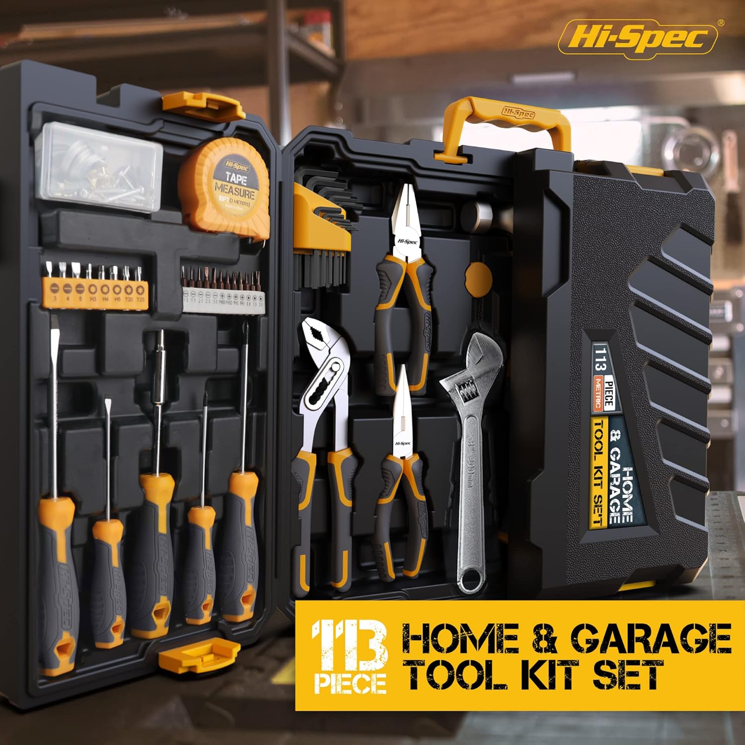 • IMMER GRIFFBEREIT FÜR JEDEN JOB: Unser Hi-Spec 113-tlg Werkzeug Set ist Ihr zuverlässiger Begleiter für alltägliche Reparaturen, Montagen und Wartungen. Ein treuer Freund für Handwerker, Heimwerker, Studenten, Anfänger und Hausbesitzer.