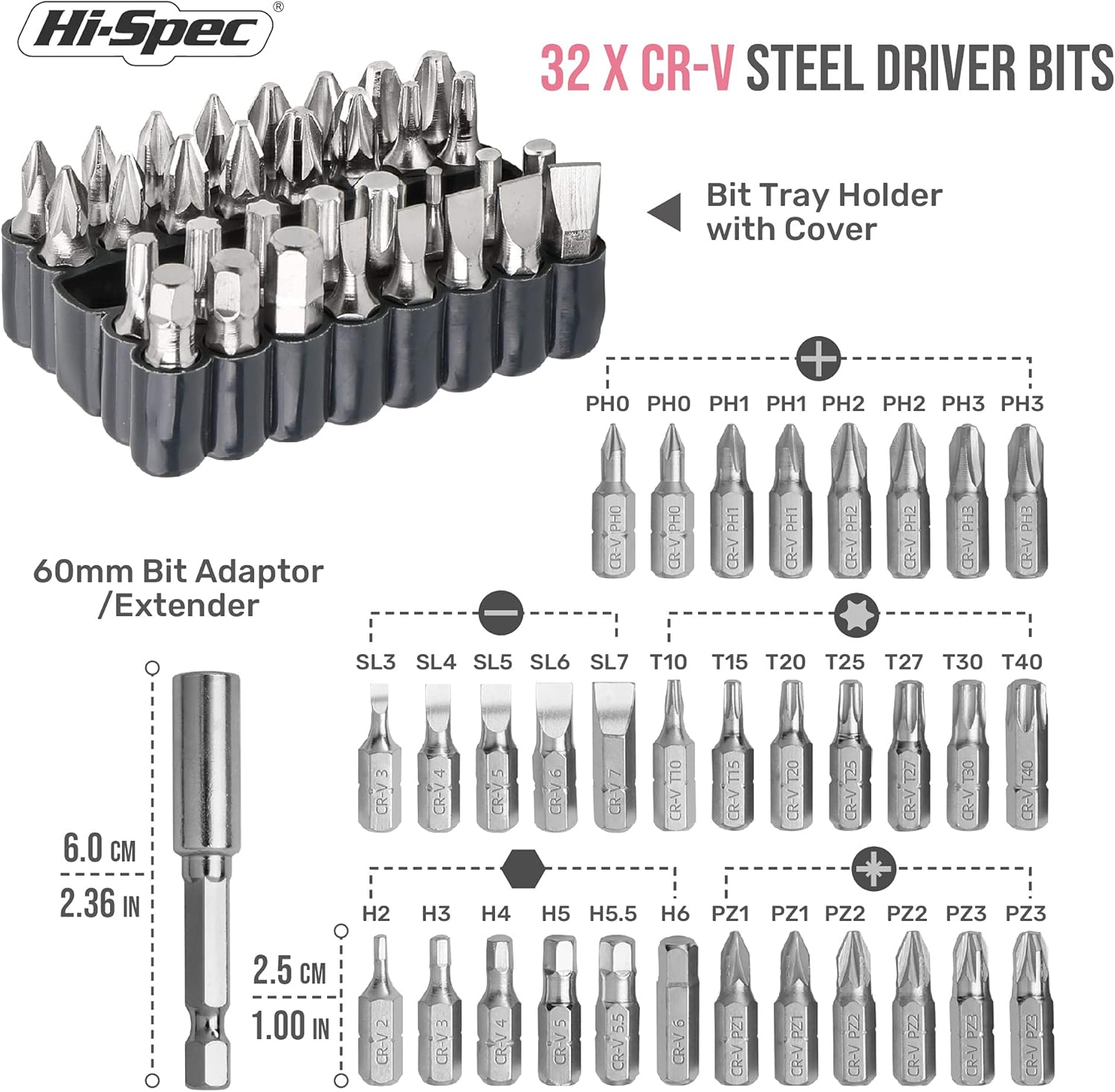 - EIN BITSET FÜR ALLE AUFGABEN: Legen Sie jetzt los mit den gängigsten Schraubendreher-Bitgrössen und -typen für Heim und Büro, hergestellt aus einer strapazierfähigen und rostfreien Cr-V-Stahllegierung: Schlitz/Flach, Phillips, Hex/Allen, Pozidriv