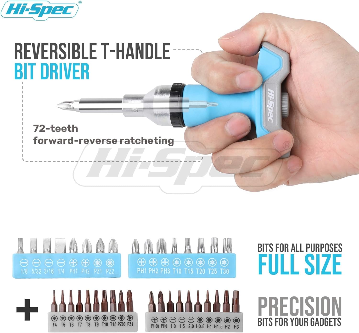 - TREIBER MIT T-GRIFF: Ergonomischer Ratschen-T-Griff für Drehmoment und Kontrolle mit 3-Positionen-Vorwärts-Rückwärts-Verriegelungsfunktionen. Zur Verwendung mit den 16 gängigsten Schraubengrössen sowie 20 Präzisions-Bits für Elektronik und