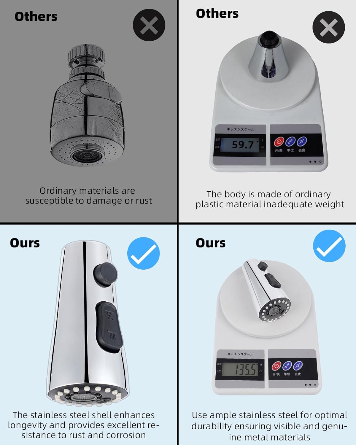 - 【Geniales Design】Der Zerstäuber besteht aus Silikondüsen, ist leicht zu reinigen und hat einen eingebauten Luftsprudler, der einen spritzfreien Strahl erzeugt. Der Luftsprudler kann leicht entfernt und gereinigt werden, um einen konstanten Fluss