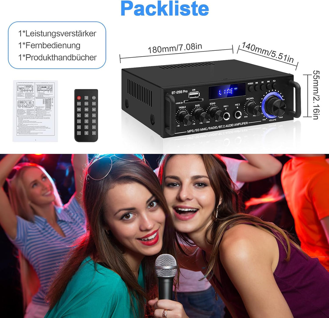 • Einfach zu bedienen: Bluetooth-Audio-Verstärker kompatibel mit zwei 4-16Ω passive Lautsprecher. Leistungsverstärker plifier mit Fernbedienung für entfernte Audio-Einstellungen, kann SD-Karte und USB MP3-Player zu lesen, unterstützen BT drahtlose