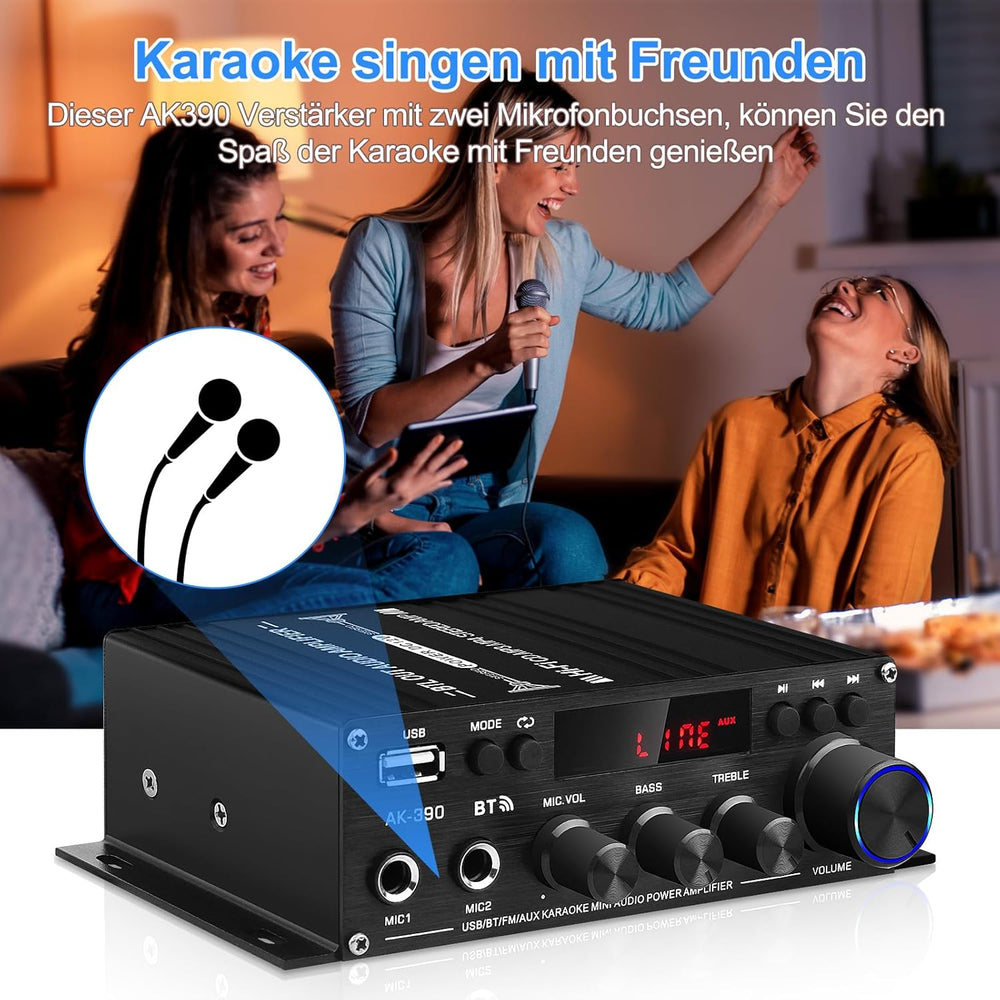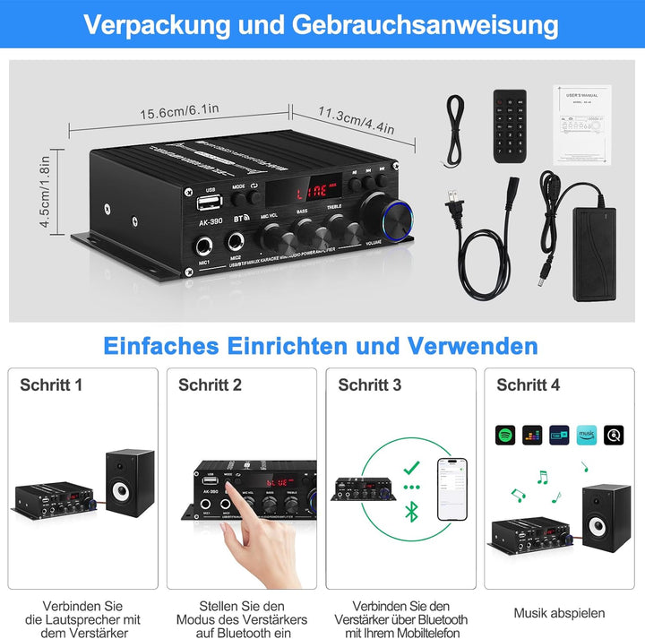 HiFi Stereo Verstärker Empfänger für Home Lautsprecher, AK-390 Bluetooth5.0 Mini Audio Amp 2.0 Kanal