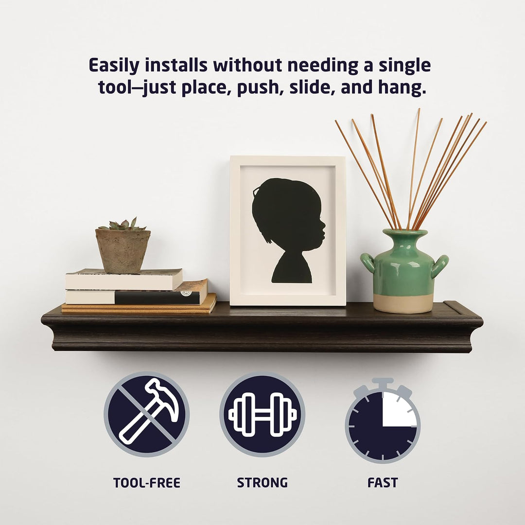 - Wandmontierbares schwebendes Regal lässt sich leicht installieren, ohne ein einziges Werkzeug zu benötigen – einfach aufstellen, drücken, schieben und aufhängen.