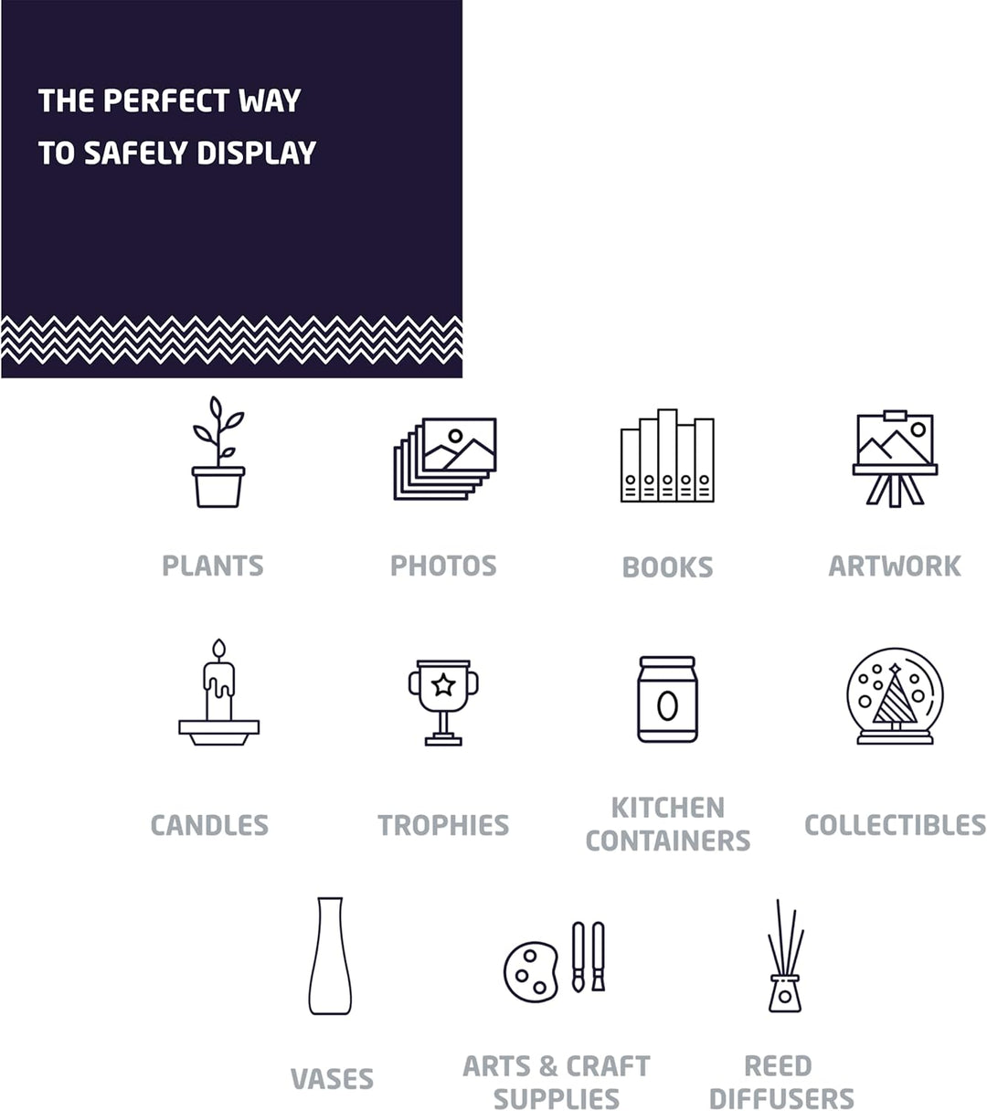 - Zum sicheren Aufhängen von Pflanzen, Fotos, Büchern, Kunstwerken, Kerzen, Trophäen, Küchenbehältern, Sammlerstücken, Vasen, Kunst- und Bastelbedarf, Schilfrohrdiffusoren und anderen Dekorationen bis zu 9 kg