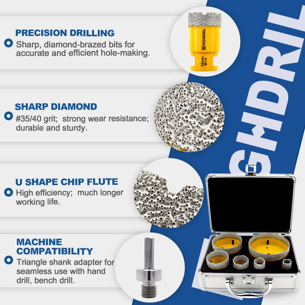 - 【Hohe Qualität】Fliesenbohrer diamantbohrer ist aus hochwertigem diamant und stahl durch vakuum-löttechnik für schnelles schneiden und Bohren, äusserst effizient und robust.