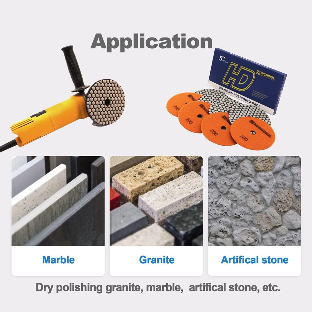 • ✅Anwendung: Für das Trockenpolieren von Granit, Marmor, Fliesen, Kunststein, etc. Empfohlene Geschwindigkeit ist 2000RPM und die maximale Geschwindigkeit ist 4000RPM