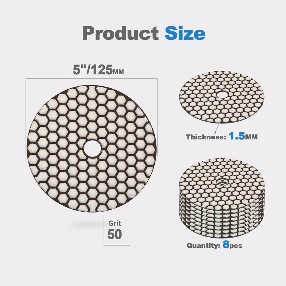 - ✅Packung mit 8 trockenen Diamant-Polierpads, flexibel mit Harzbindung und Nylonrücken (gemischte Körnung und Kunststoffträger)