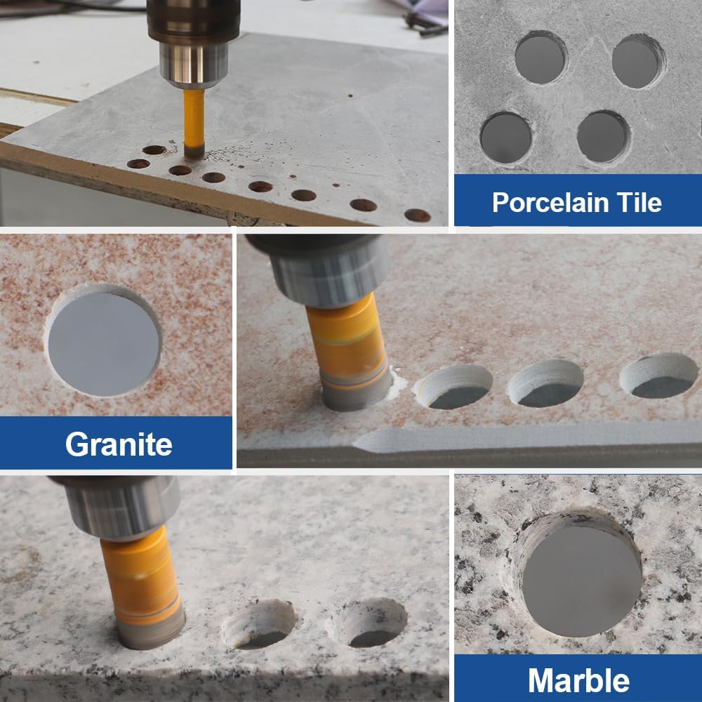 - Perfekt zum einfachen Bohren in Feinsteinzeug, Keramik ( Keramikbohrer ), Natursteinfliesen, Marmor, Granit ( Granitbohrer ), Kacheln, harte Bodenfliesen, glasierte Klinker, Klinkerriemchen, Steinplatten, harte Dachziegel.