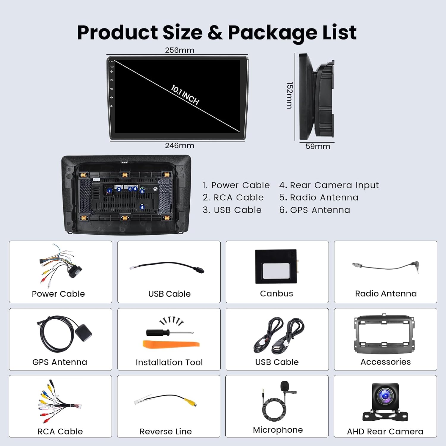 - Rückfahrkamera-Eingang & Lenkradsteuerung: Dieses Autoradio mit Rückfahrkamera, AHD-Bild, 170-Grad-Ultraweitwinkel, wasserdichtes Design.Der Bildschirm schaltet automatisch um, wenn das Fahrzeug rückwärts fährt. Unterstützt die Lenkradsteuerung des