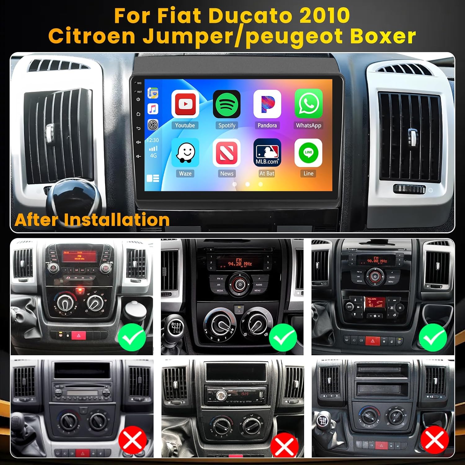 - Wireless Carplay und Wireless Android Auto: Das Autoradio mit GPS für Citroen Jumper kann mit unserer drahtlosen CarPlay- und drahtlosen Android Auto-Unterstützung auch unterwegs in Verbindung bleiben. Synchronisieren Sie Ihr Smartphone ganz einfach