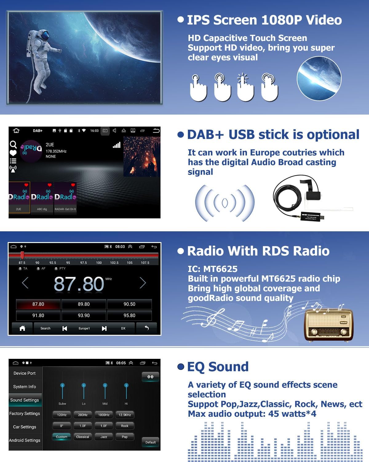 - FM/RDS-Radio und Bluetooth: Hochwertiges FM/RDS-Radio für Wettervorhersagen, Nachrichten und mehr, um das Autofahren weniger langweilig zu machen. Unterstützt das Speichern von 30 Radiosendern. Eingebautes Bluetooth 4.0, unterstützt Freisprechanrufe