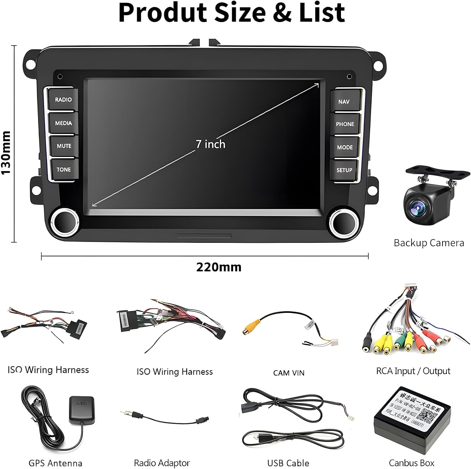 - 🚗【Radio mit Navi für VW】Apple carplay Radio mit Android System, 1+32 GB, 4-Kern 1,3 GHz, 7-Zoll Touchscreen, 1024*600 Auflösung. Das Paket enthält eine kostenlose Rückfahrkamera und Canbus.
