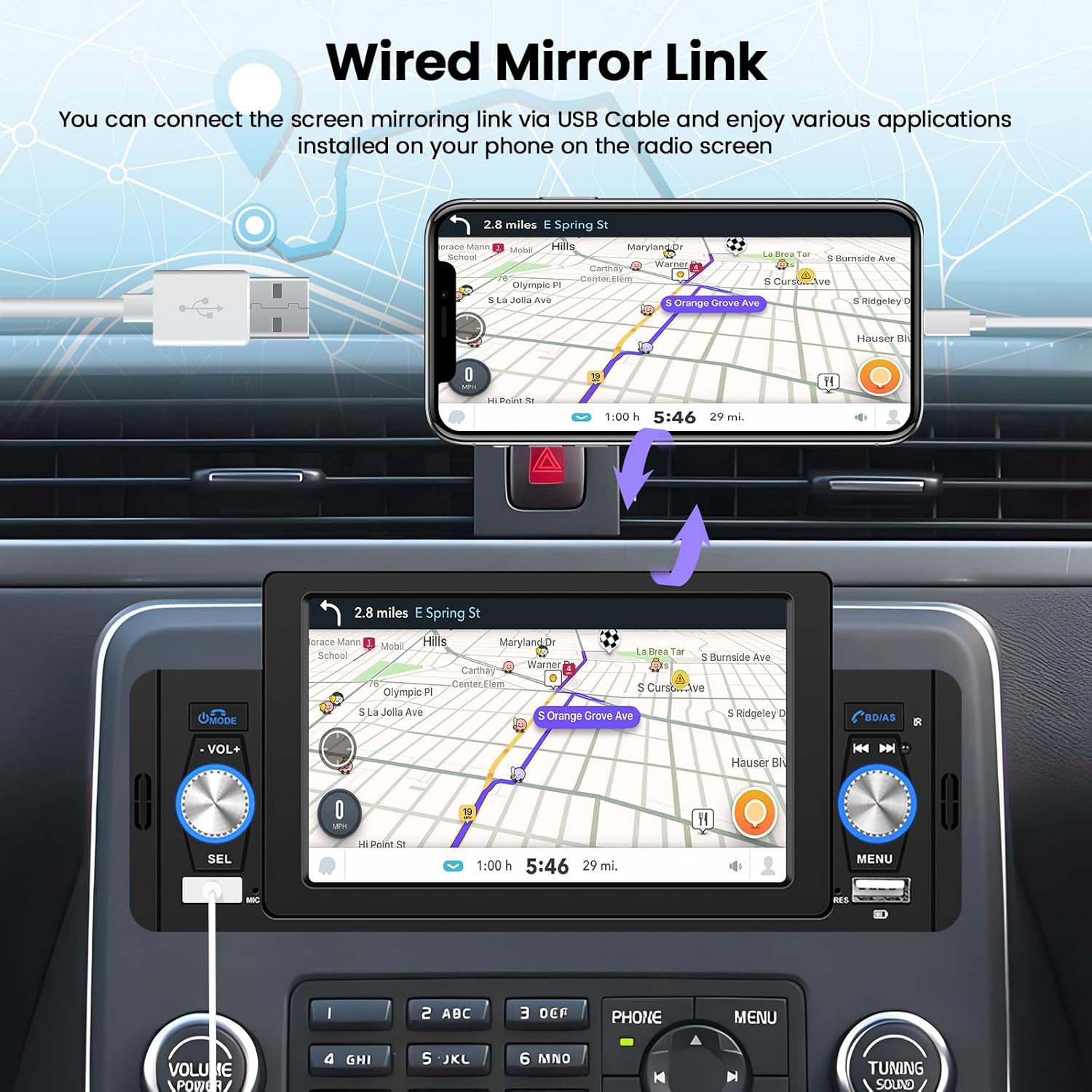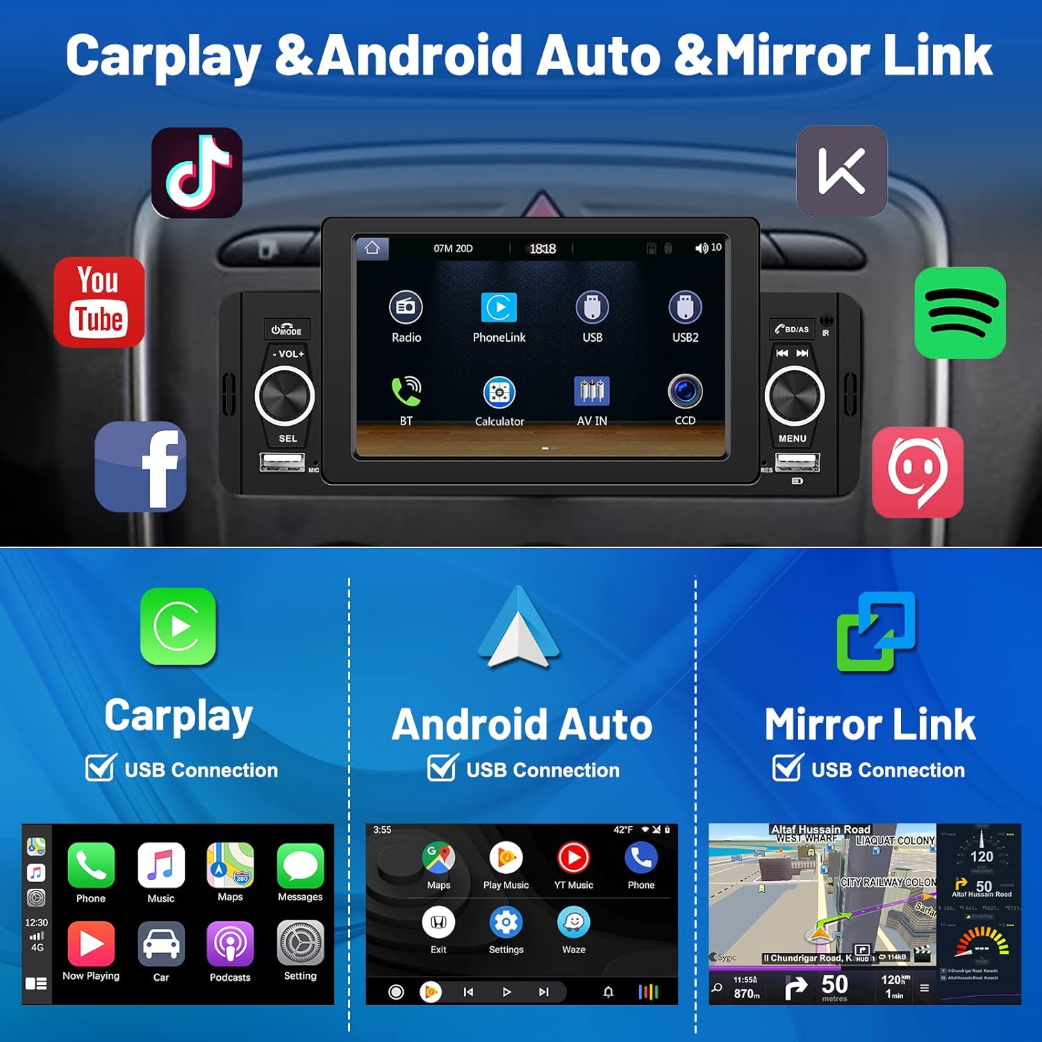 - 【Apple Carplay & Android Auto & Mirror Link】Verwenden Sie einfach ein USB Datenkabel, um Ihr Telefon anzuschliessen, und Sie können fast alle Funktionen wie Navigation, Musik usw. auf Ihrem Telefon über die App "Zlink" problemlos nutzen Synchronisieren Sie auch Ihre Telefonseiten mit dem Touchscreen des Radios (Huawei und Samsung Telefone werden derzeit nicht unterstützt).
