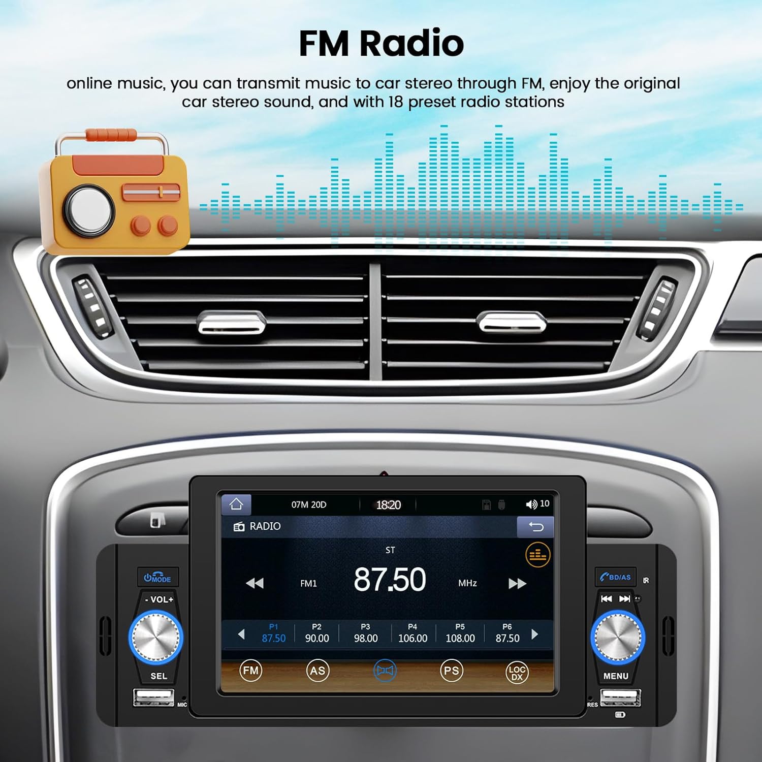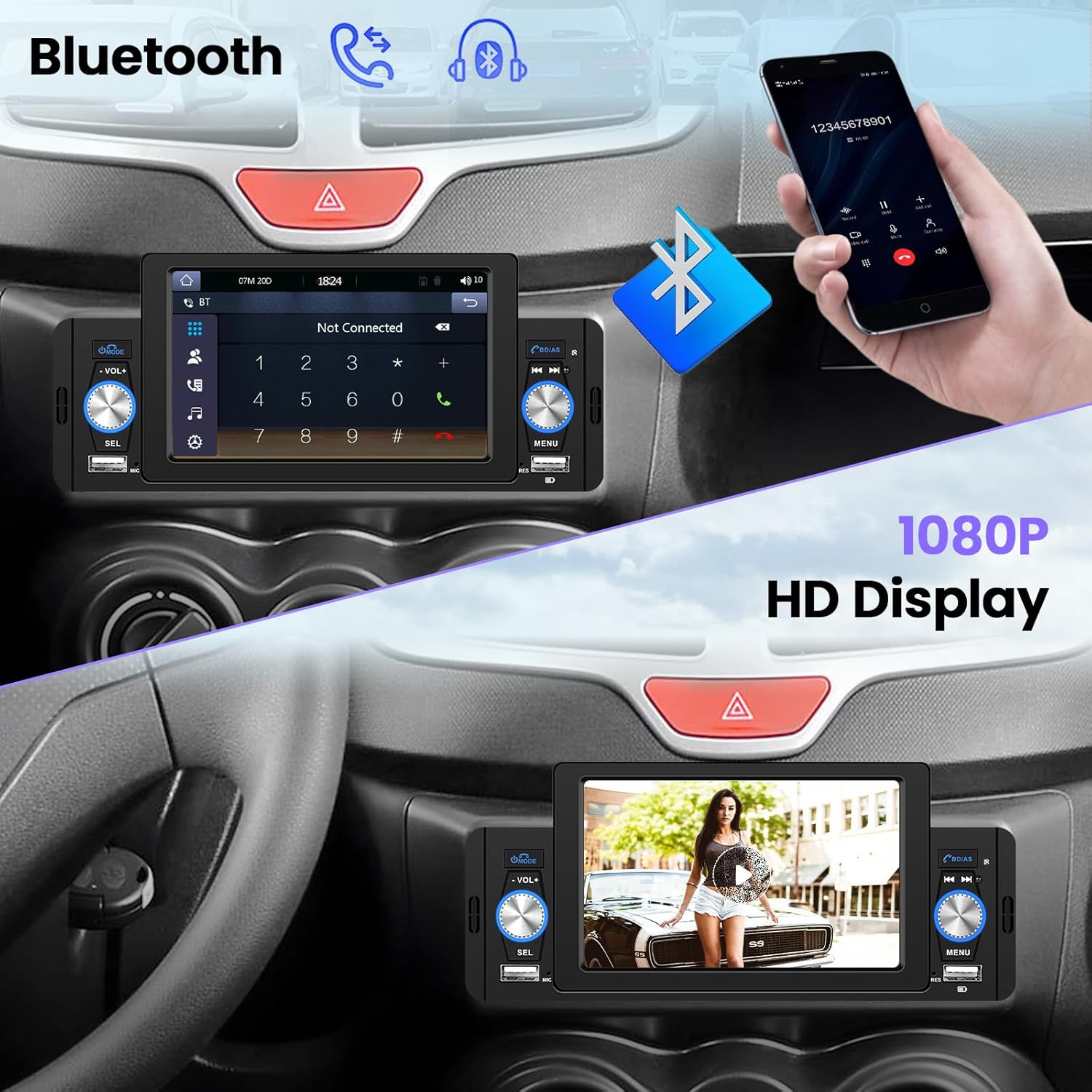 - 【FM und Bluetooth】 Autoradio Bluetooth mit eingebautem Mikrofon und externem Mikrofon, kann problemlos mit den meisten Geräten gekoppelt werden, klare Freisprechanrufe gewährleisten, Musik Streaming abspielen, Telefonbuch synchronisieren. Digitales FM 87,5 ~ 108 MHz, automatische Suche nach Radiosendern, voreingestellte 18 Kanäle.