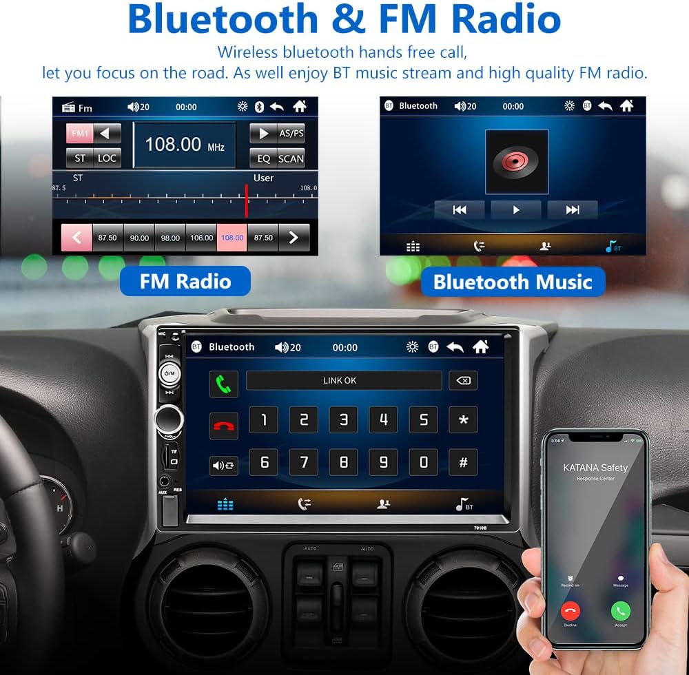 - ⭐【Bluetooth & FM-Radio】Dieses Autoradio mit Bildschirm und integriertem Bluetooth unterstützt Bluetooth-Anrufe, Bluetooth-Musik und das Herunterladen von Telefonbüchern. Dank des stabilen UKW-Radios und 18 voreingestellten Sendern können Sie