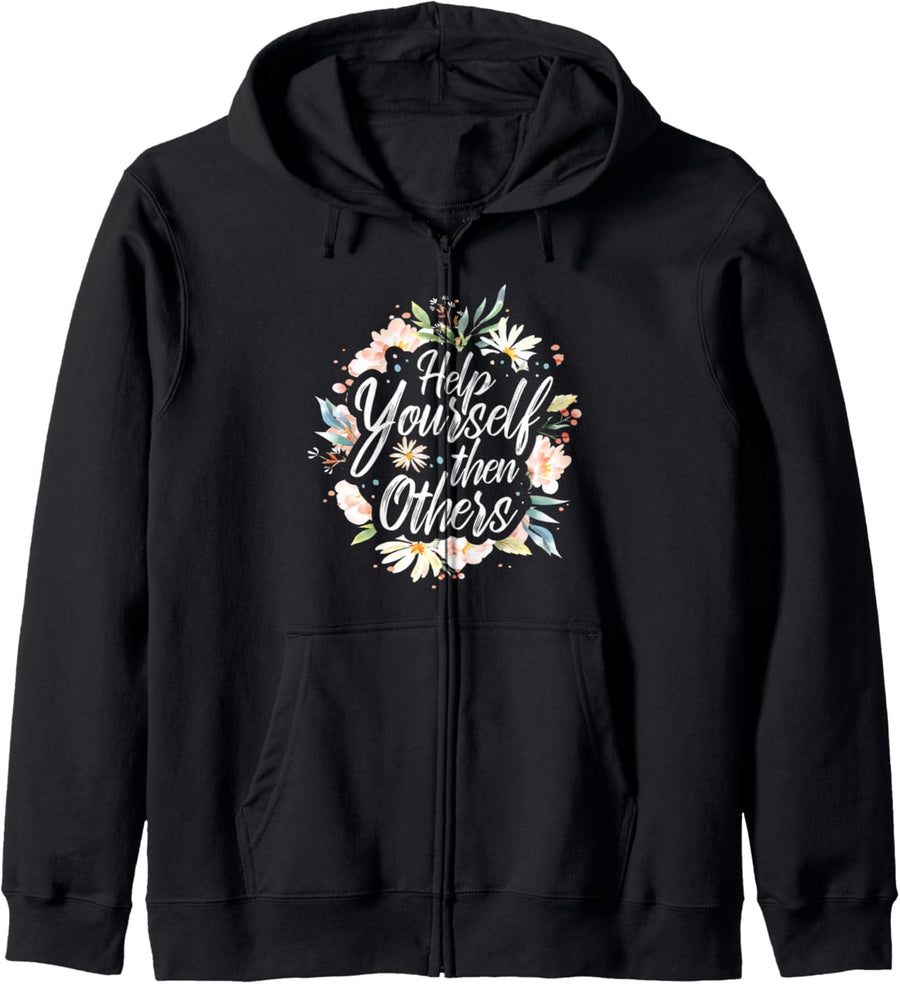 PRODUKTBESCHREIBUNGEN Schönes Grafikdesign mit Schriftzug Zitat "Hilf dir selbst, dann anderen". Dieses Hilf dir selbst und dann anderen | Spruch Motivation Blumen Kleidungsstück ist von Motivierende Kleidung & Accessoires erstellt. Mehr