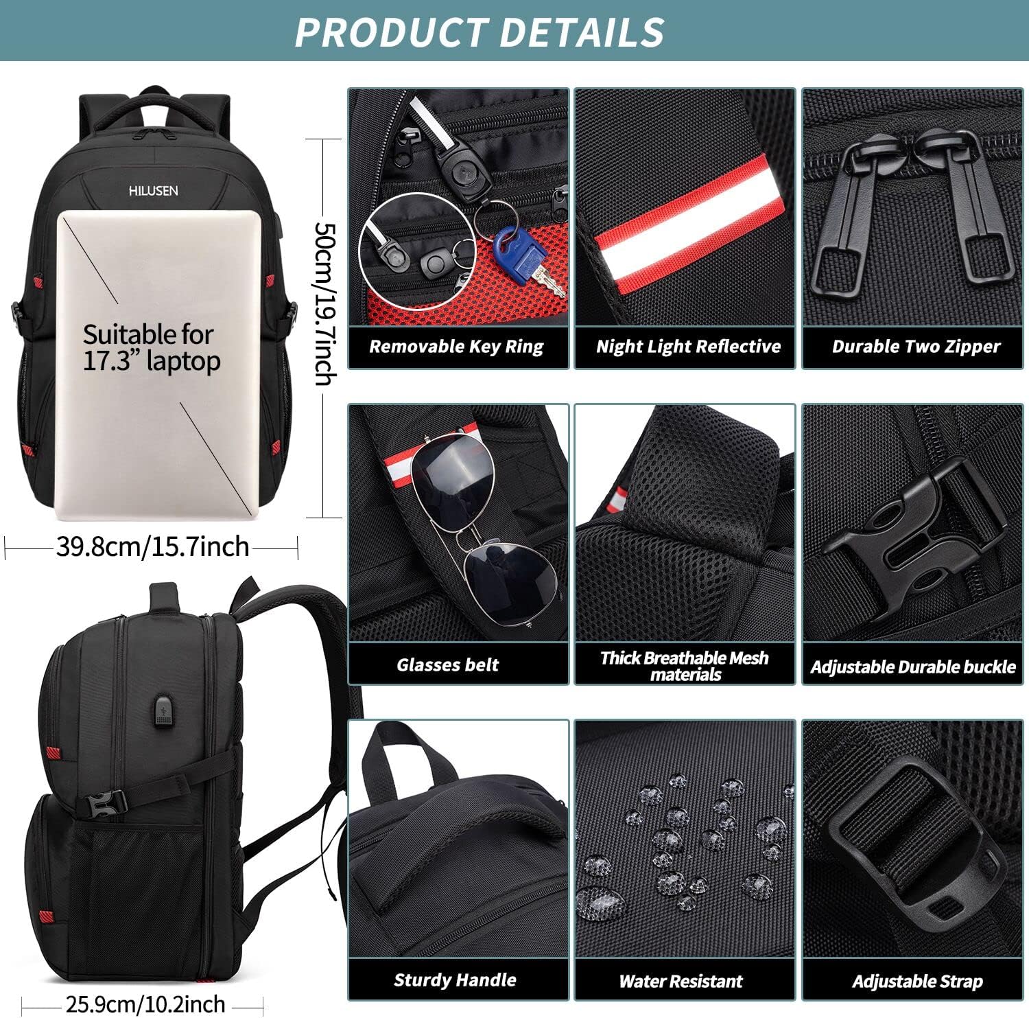- GROSSE GRÖSSE UND LANGLEBIGES MATERIAL - der 17 Zoll Laptop Rucksack Abmessungen: 19,7 "H x 13,4" B x 7,9" T. Gewicht: 2,07 Pfund, Fassungsvermögen: 50 L, separates gepolstertes Laptopfach für 15,6, 17 und bis zu 17,3 Zoll Laptops/ Computer für