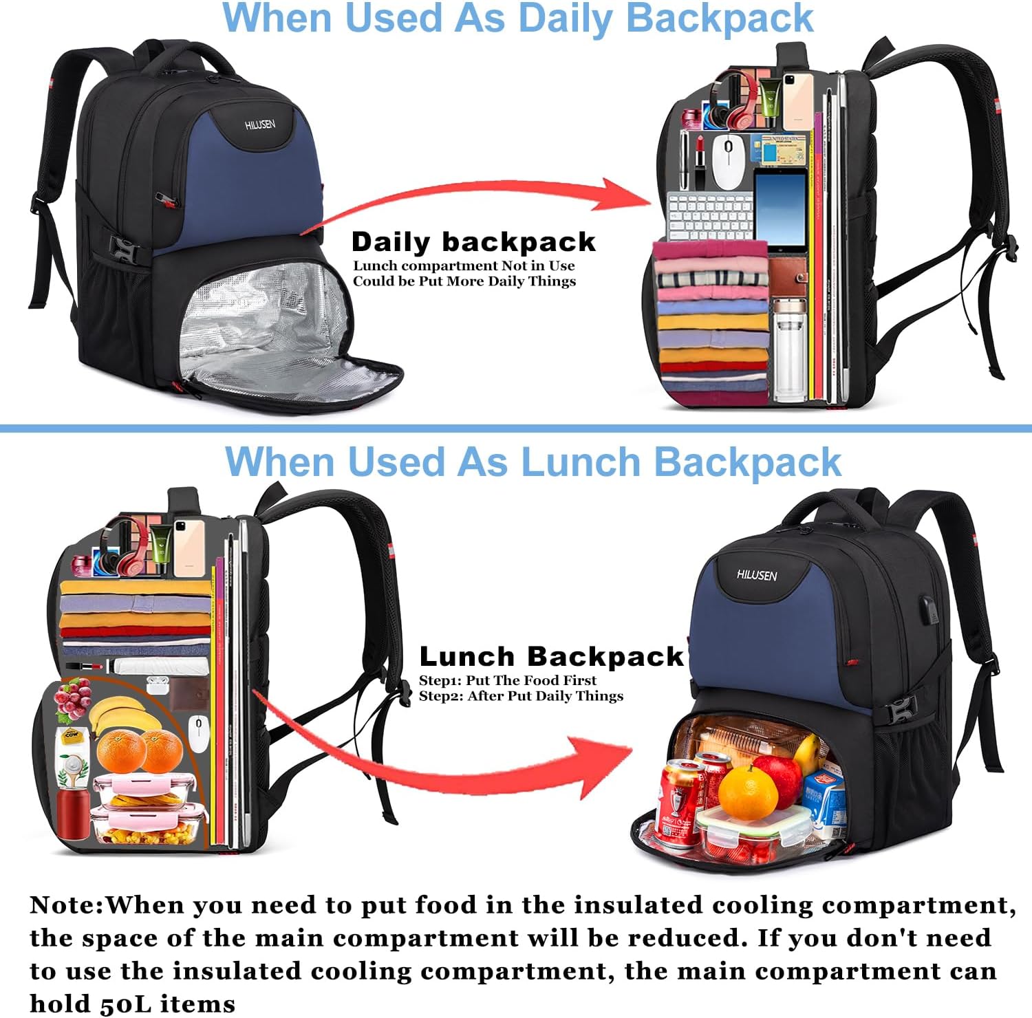 - ISOLIERTES LUNCH BOX-FACH - Der Lunch-Rucksack mit einem isolierten Kühlfach, das Speisen und Getränke ca. 3-5 Stunden kühl oder warm halten kann, leicht zu reinigen und zu verstauen, wenn sie nicht gebraucht werden, perfekt für Schule, Arbeit,