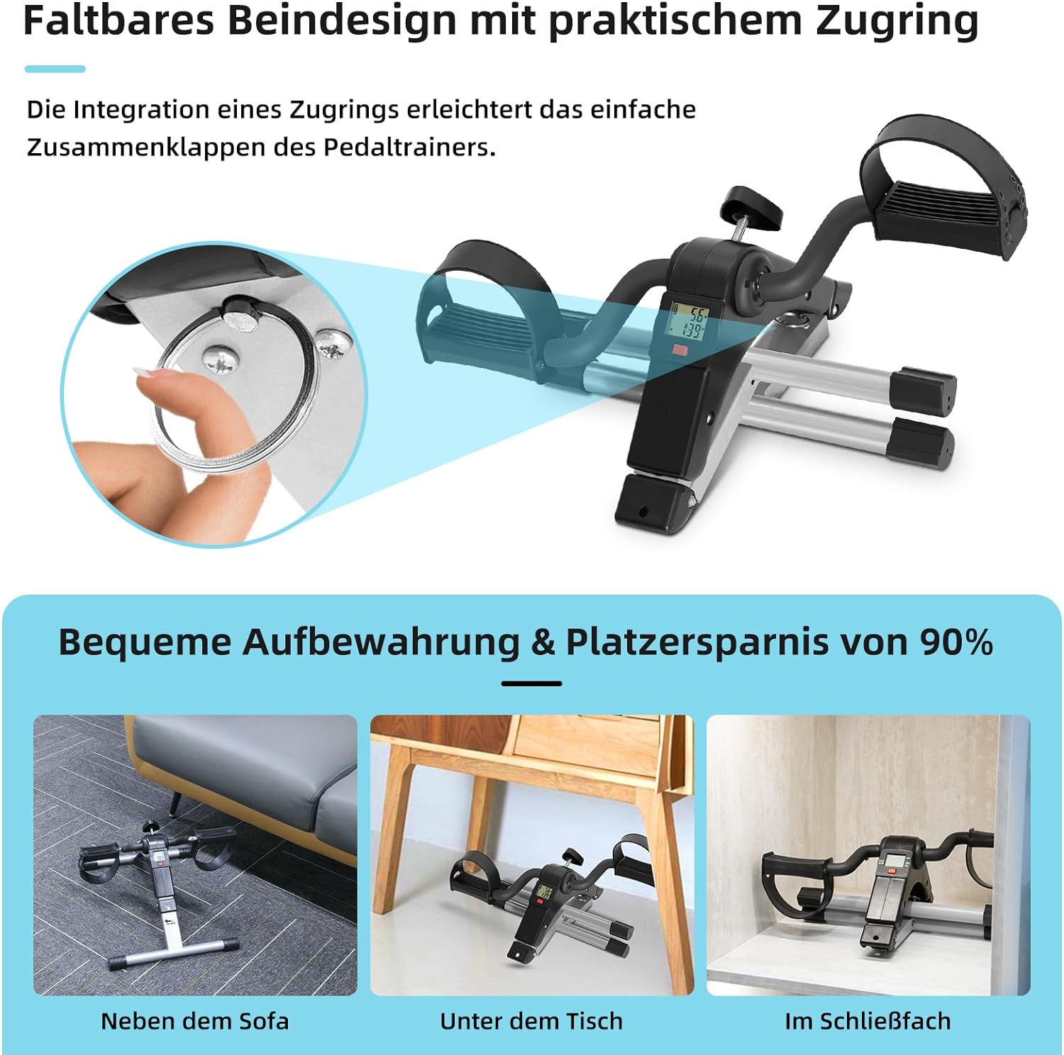 - Faltendes Design: Unser Mini-Pedaltrainer kann zusammengeklappt werden, was ideal für das Cardio Fitness GYM Training zu Hause, im Büro oder im Urlaub ist. Ein Must-Have Fitness-Tool, um Sie gesund und heiss zugleich zu halten.
